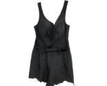 Original 1950s pin-up swimsuit/playsuit by Rose Marie Reid of California, one of the most iconic names in mid-century swimwear. This piece features thick black slightly stretchy lastex fabric (girdle-like support) with a romper/playsuit silhouette and classic 1950s details: