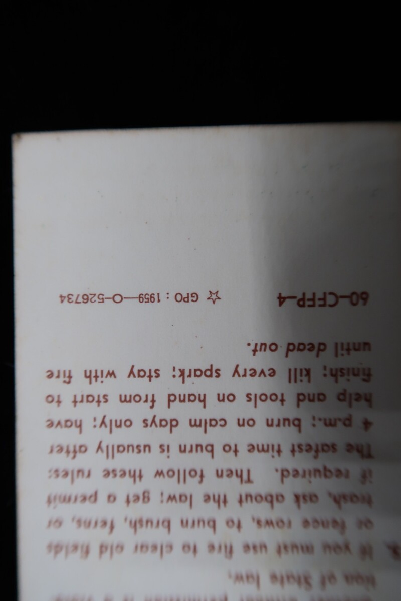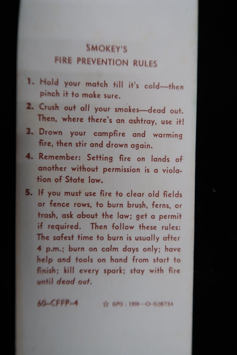 Primary image for Vtg 1959 US Gov SMOKEY BEAR Bookmark Forest Fire Prevention Rules Die Cut Rare