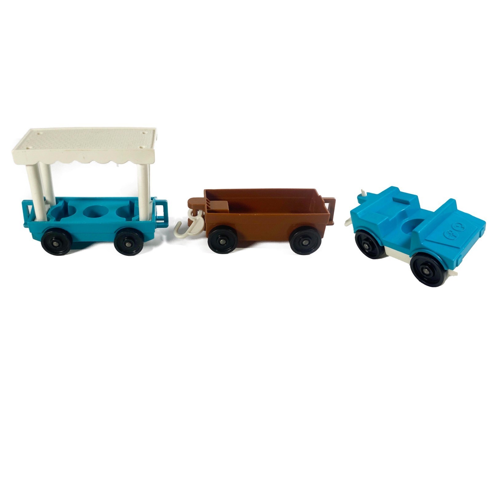 Pre-owned 3 tram cars Some scuffs on bases Loop on backside Marked 1984 F-P Toys Made in USA