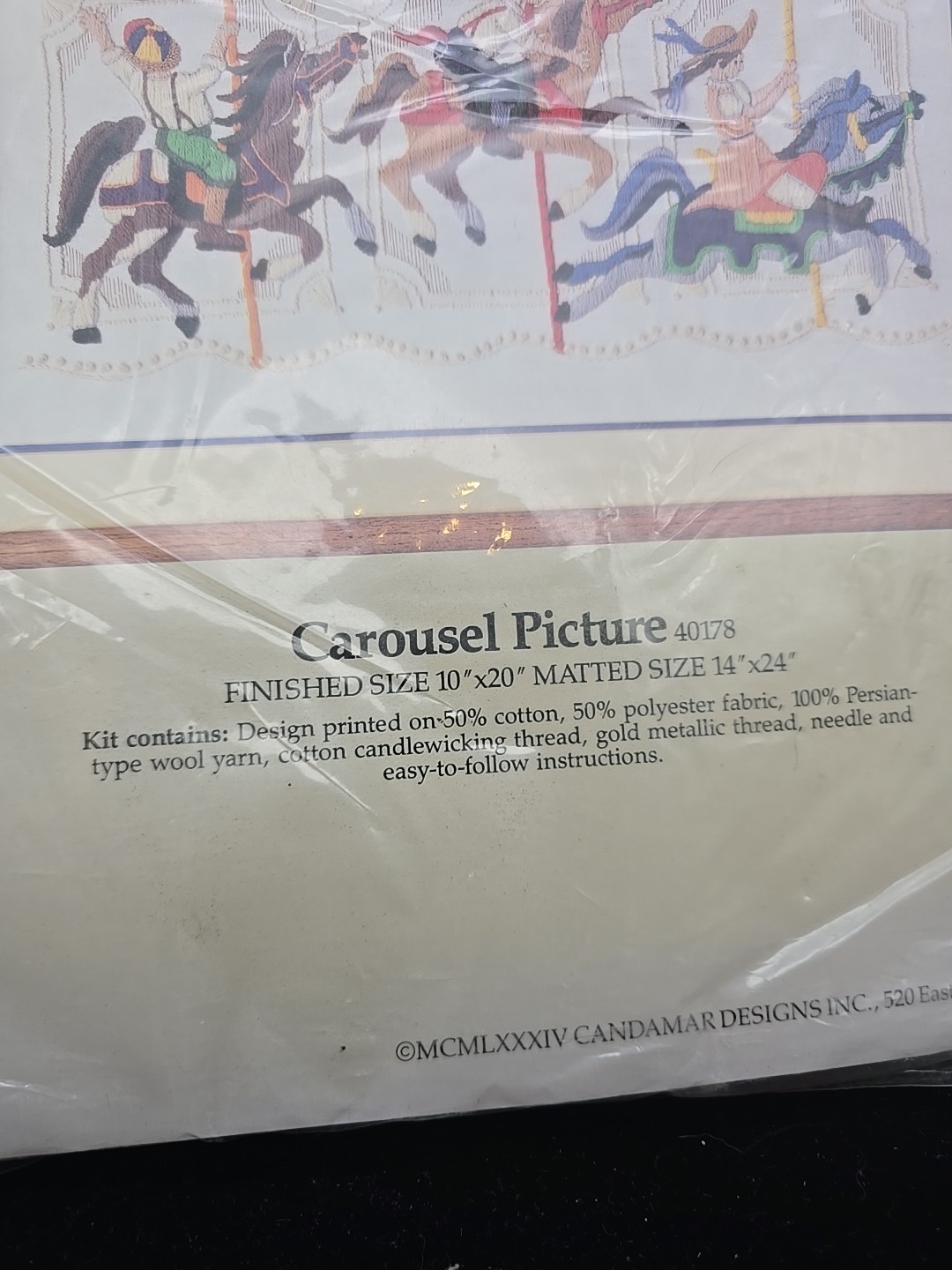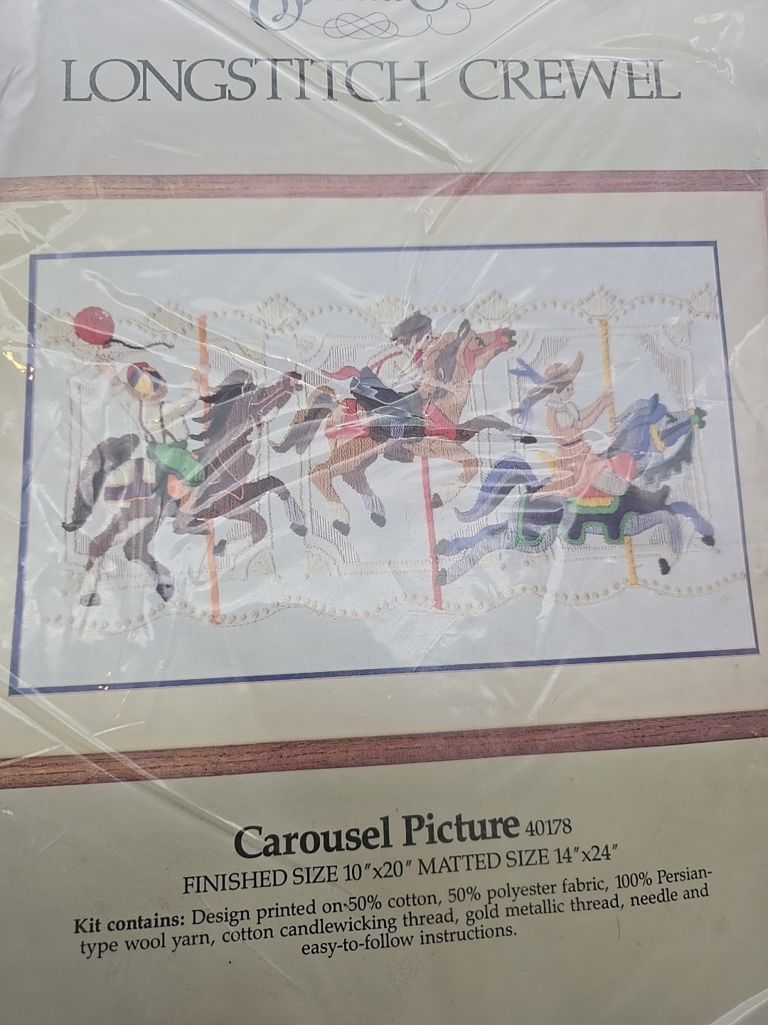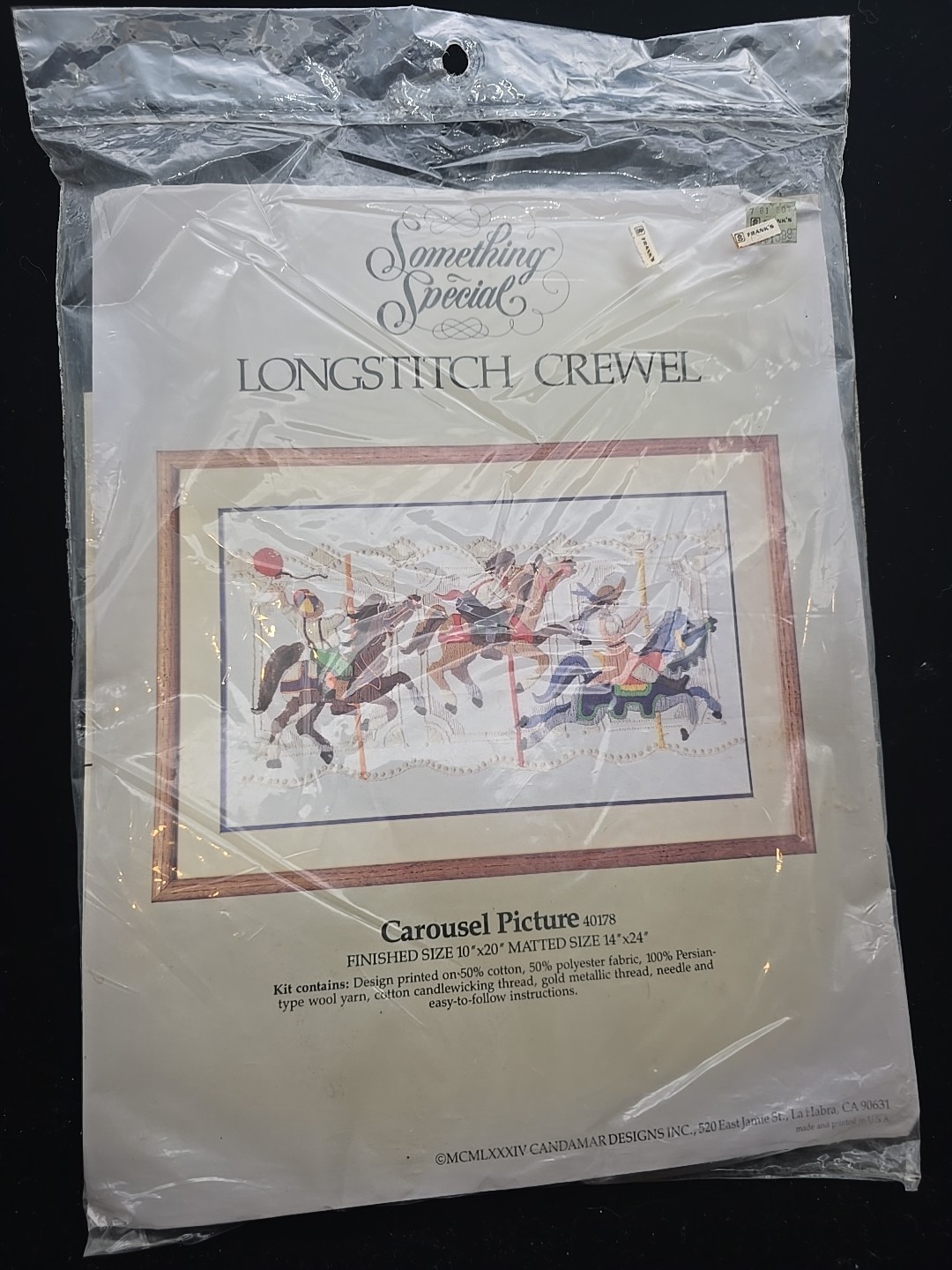 - Vtg 1984 Something Special Longstitch Crewel Carousel Candamar Designs 40178
