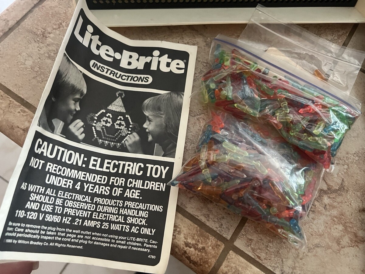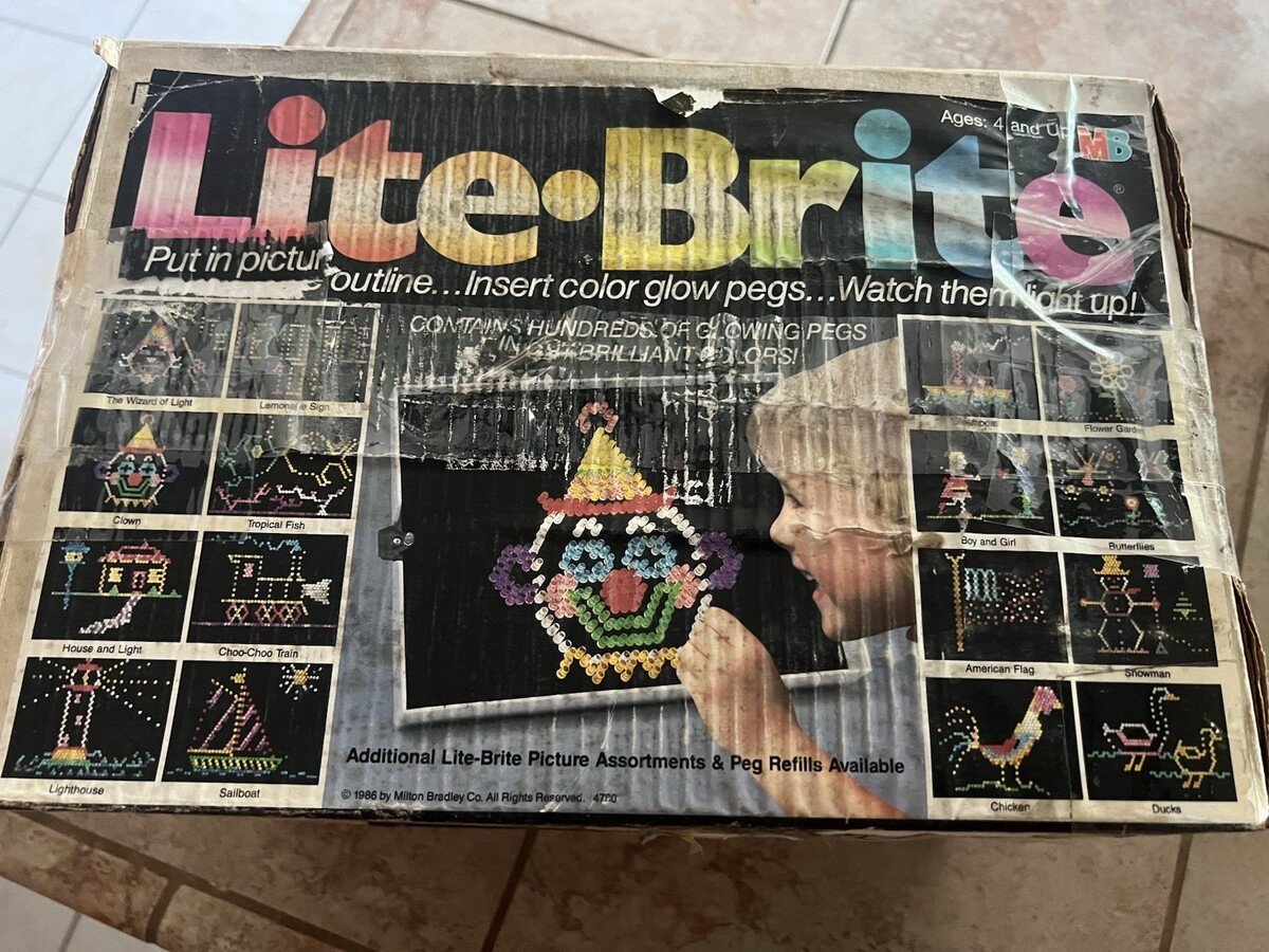 Vtg 1986 Milton Bradley Lite Brite Toy Original Box Papers & Pegs Tested Works