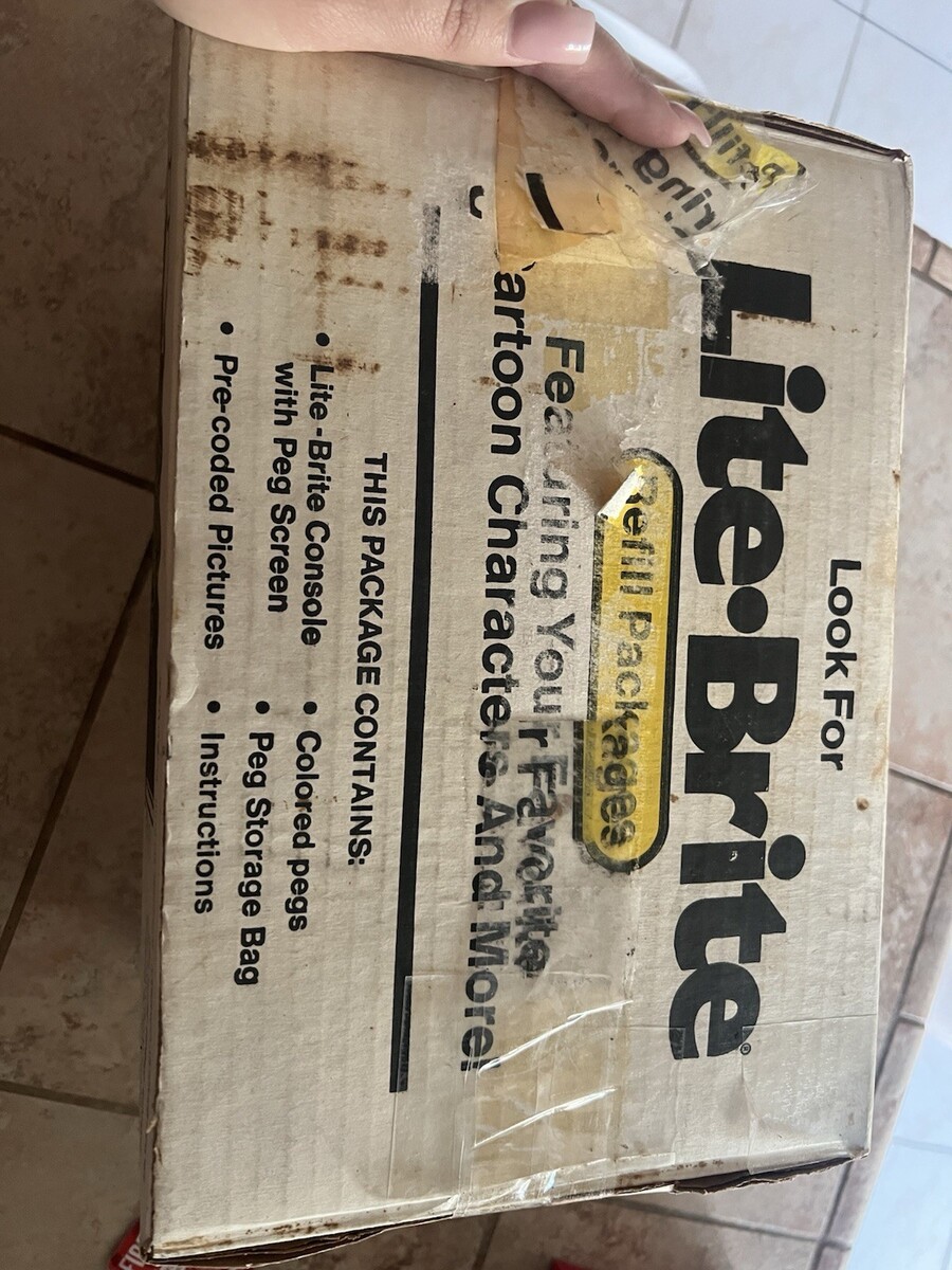 Preowned vintage 1986 Lite-Brite by Hasbro in working condition. Comes with original box, instructions, 16 design sheets, and an assortment of colored pegs (exact count unknown). Box shows significant wear and tear consistent with age, but the Lite-Brite unit itself has no cracks or chips and functions properly. Classic retro toy that still lights up creativity after all these years. Please review all photos for full condition details and included items. Ships carefully packed with tracking.