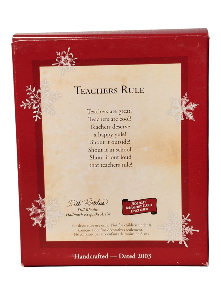 Vtg 2003 Hallmark Keepsake Teachers Rule Ornament w/Box & Holiday Card Detailed