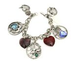 AMAZING RARE VTG 40s Florenza Fleur de Lis Glass Charm Etruscan FOB HTF Bracelet. Silvertone metal, clip clasp. Shipped with USPS First Class. App 7" long with charms over 1" wide. New with tags.