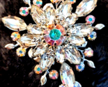 Vtg 50s Judy Lee Aurora Borealis & Rhinestones Silver Tone Atomic Spray Brooch
