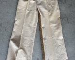 These vintage 70s Bell Bottom Pants by Tobias Kotzin are perfect for a casual occasion with their cream color and wide flare leg style. Made from cotton, these original pants have a 30-inch inseam and a men's 28-inch waist size, ideal for a retro disco look reminiscent of Saturday Night Fever. Manufactured in the United States, these pants capture the essence of 70s fashion with a nod to the era's boogie nights and dazed and confused vibe. Perfect for adding a touch of nostalgia to any outfit.