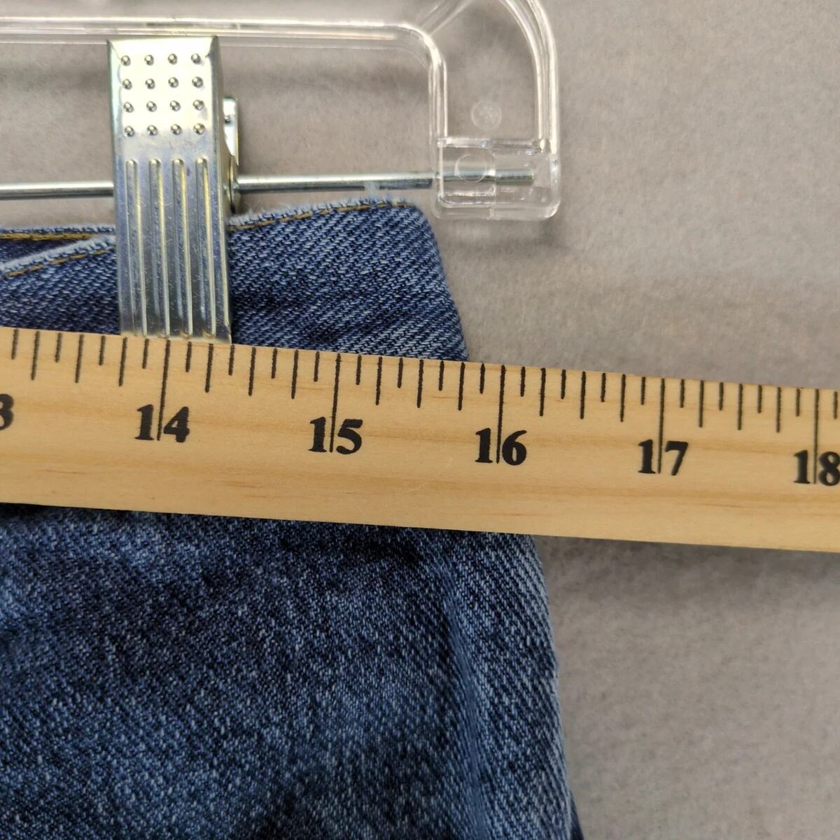 Features: Relaxed Fit, Straight Leg, Mid Rise, Medium Wash, Pockets, Easy Care, Distressed, Solid Pattern, 32 in Measured Waist, 31 in Inseam, Button Zip Closure, 5-Pocket Design, Brass Rivets, Contrast Stitching, Logo, Machine Washable