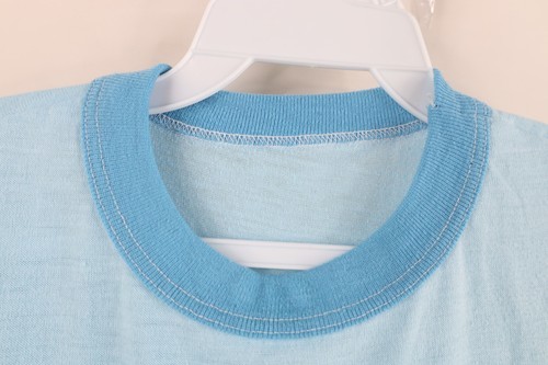 Hole front bottom. Stain back bottom. Collar, arms discolored. Graphics, color faded. Pilling