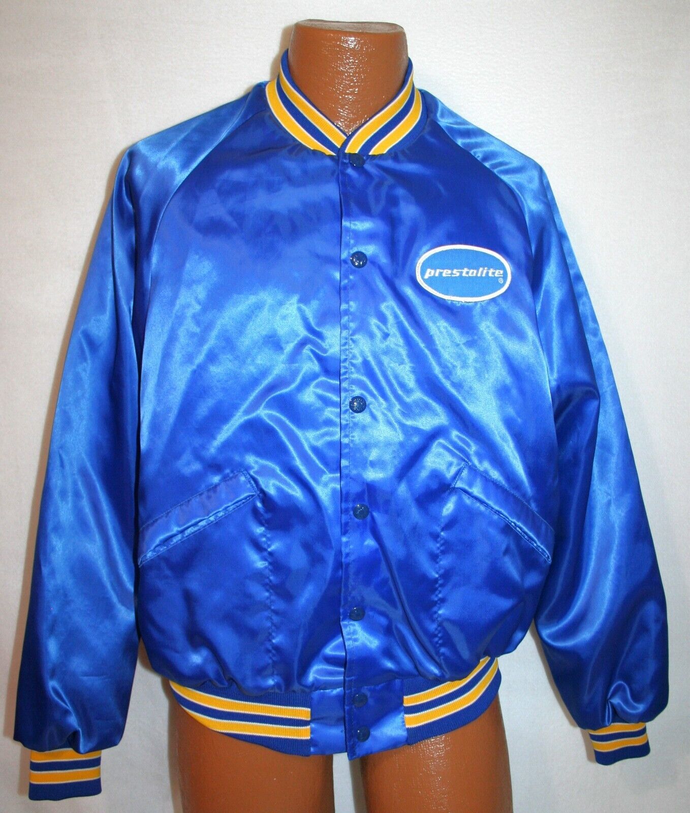 - Vtg 80s KING LOUIE Pro Fit Nylon Satin PRESTOLITE PATCH Jacket L Motor Racing