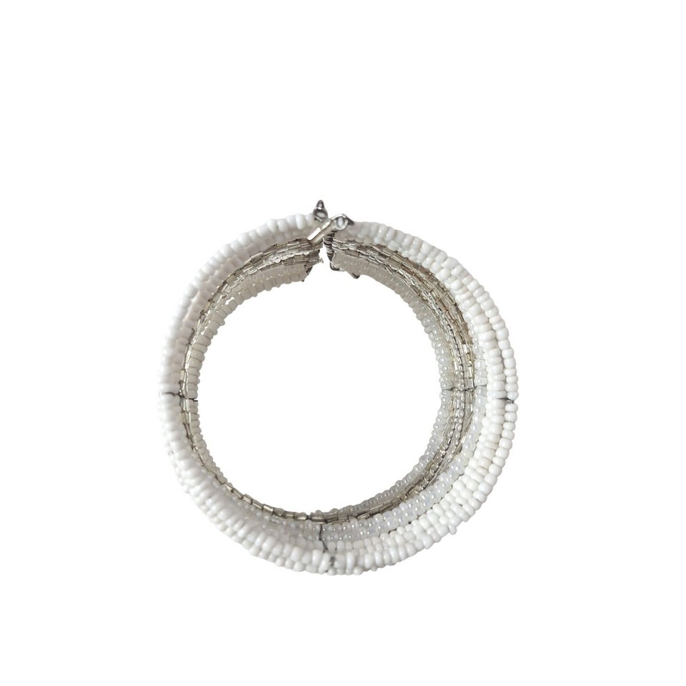 Primary image for Vtg 90s Boho White Glass Transparent Micro Bead Cuff Bracelet Costume Jewelry