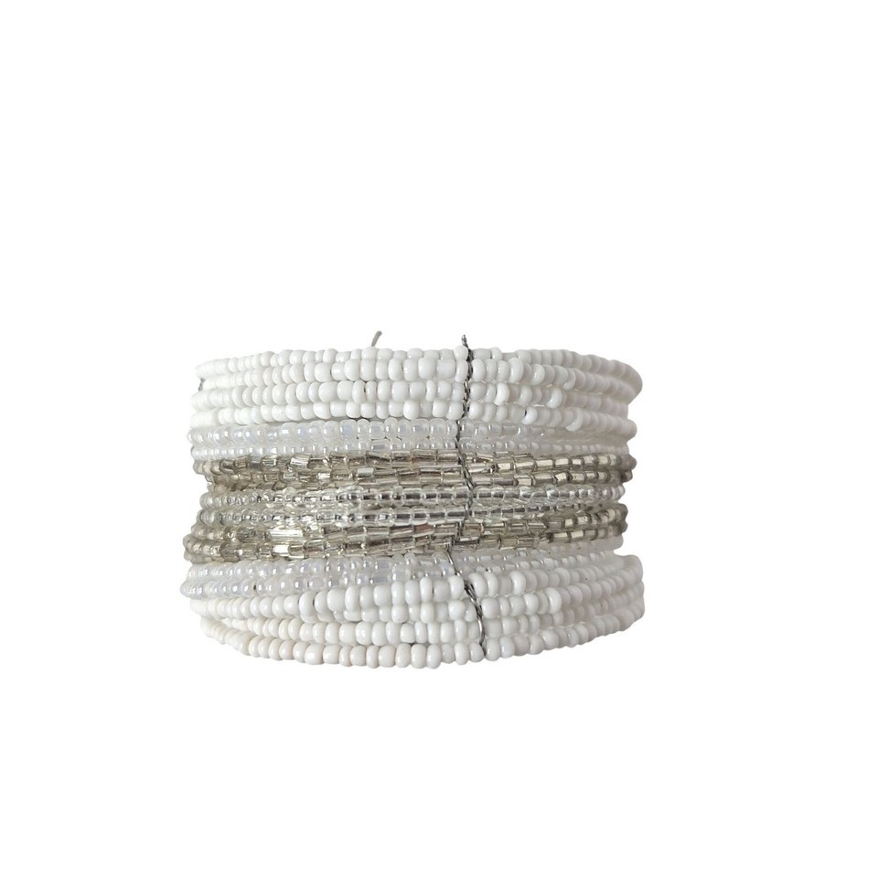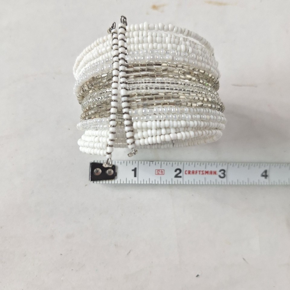 Vtg 90s Boho White Glass Transparent Micro Bead Cuff Bracelet Costume Jewelry Size: Women's OS Approximately 3" long Excellent pre owned condition with normal wear. From a smoke free and pet free home. J52
