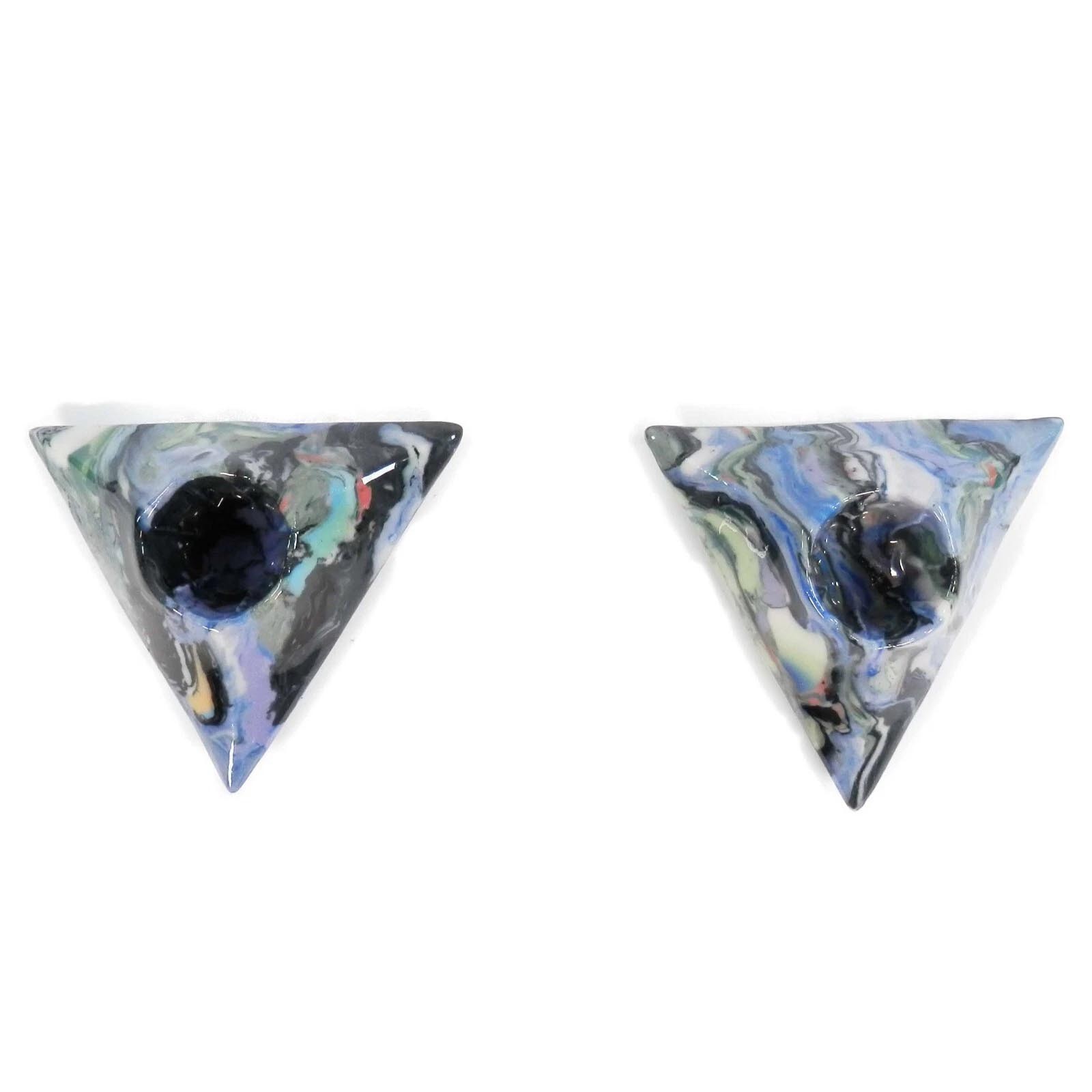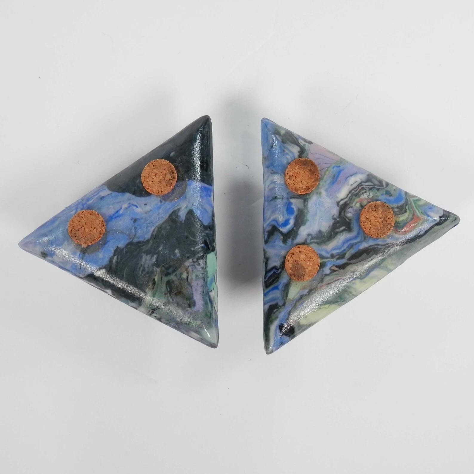 Vtg 90s Borge Applied Art Blue Resin Triangle Candlestick Holder Geo Modern