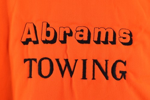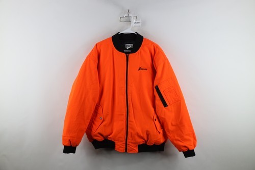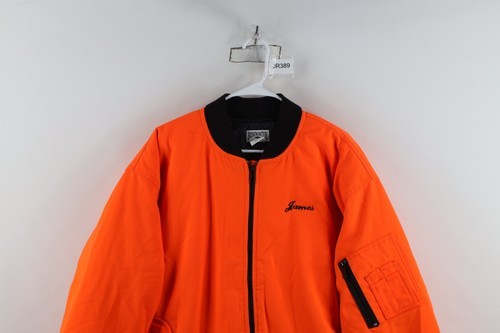 - Vtg 90s Mens Size XL Spell Out Abrams Towing Quilted Bomber Jacket Blaze Orange