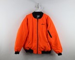 Vtg 90s Mens Size XL Spell Out Abrams Towing Quilted Bomber Jacket Blaze Orange