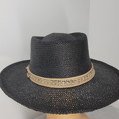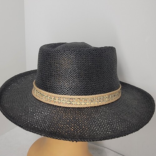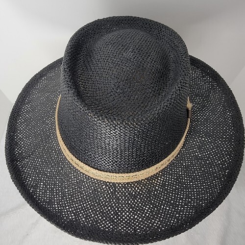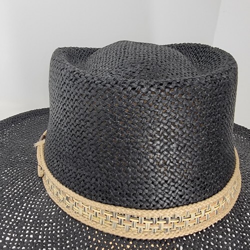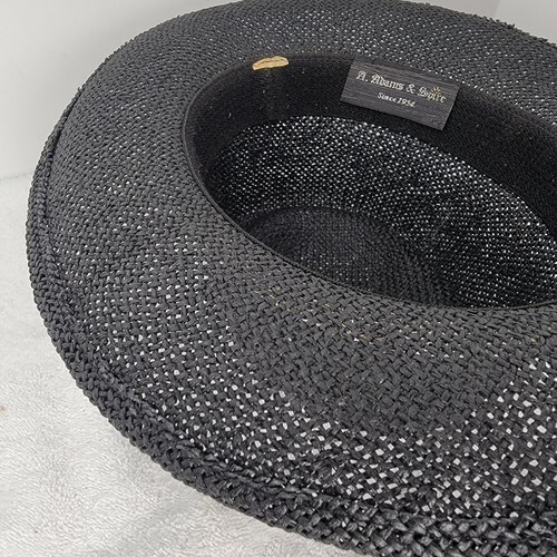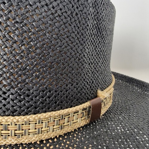 - Vtg A. Adams & Spire Black Woven Straw Sun Hat Cowboy Golf Mesh USA