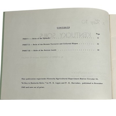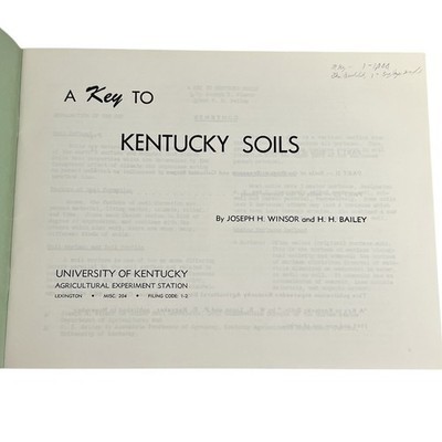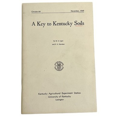 A Key to Kentucky Soils ? Lot of 3 Editions Published by the University of Kentucky Agricultural Experiment Station, Lexington Includes three publications spanning multiple decades: 1. Early Edition (~1940) ? ?A Key to Kentucky Soils with Symbols for Mapping.? Brown cover, handwritten notes and field references by previous owner. Authored by P. E. Karraker W. S. Ligon. 2. 1949 Edition (Circular 64) ? A Key to Kentucky Soils by W. S. Ligon P. E. Karraker. Includes fold-out soil key chart. Clean interior, light cover wear. 3. Later Edition (~1960s) ? A Key to Kentucky Soils by Joseph H. Winsor H. H. Bailey. Green cover, updated data tables and classifications. Details: ? Published by the University of Kentucky Agricultural Experiment Station ? Topics include soil classification, mapping symbols, and regional soil descriptions ? Excellent resource for Kentucky agricultural history and soil science reference ? Condition: Overall good to fair vintage condition with typical age wear and notes.