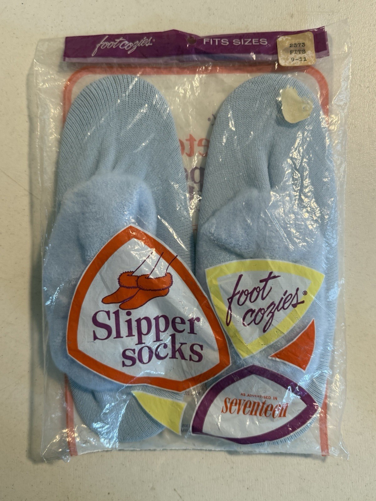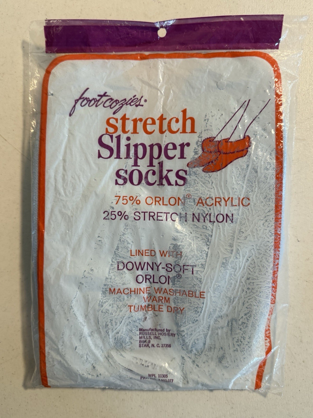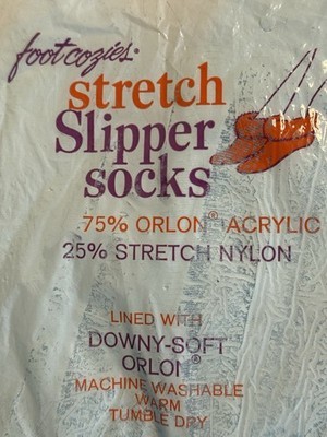 Vtg Acrylic Nylon Lined Cuffed Slipper Socks Soft Fluffy Foot Blue 9-11 New Color: Light Blue Cuffed Slipper Socks Foot Cozies Lined with Downy-Soft Orlon Machine Washable, Warm, Tumble Dry Made By Russell Hosiery Mills Inc. in Star, North Carolina USA 75% Orlon Acrylic 25% Stretch Nylon Size: 9 - 11 As advertised in Seventeen Magazine Brand new never has been opened. Hard to Find. Please see photos. Please see our other items. We have other Vintage Socks and Vintage . In N