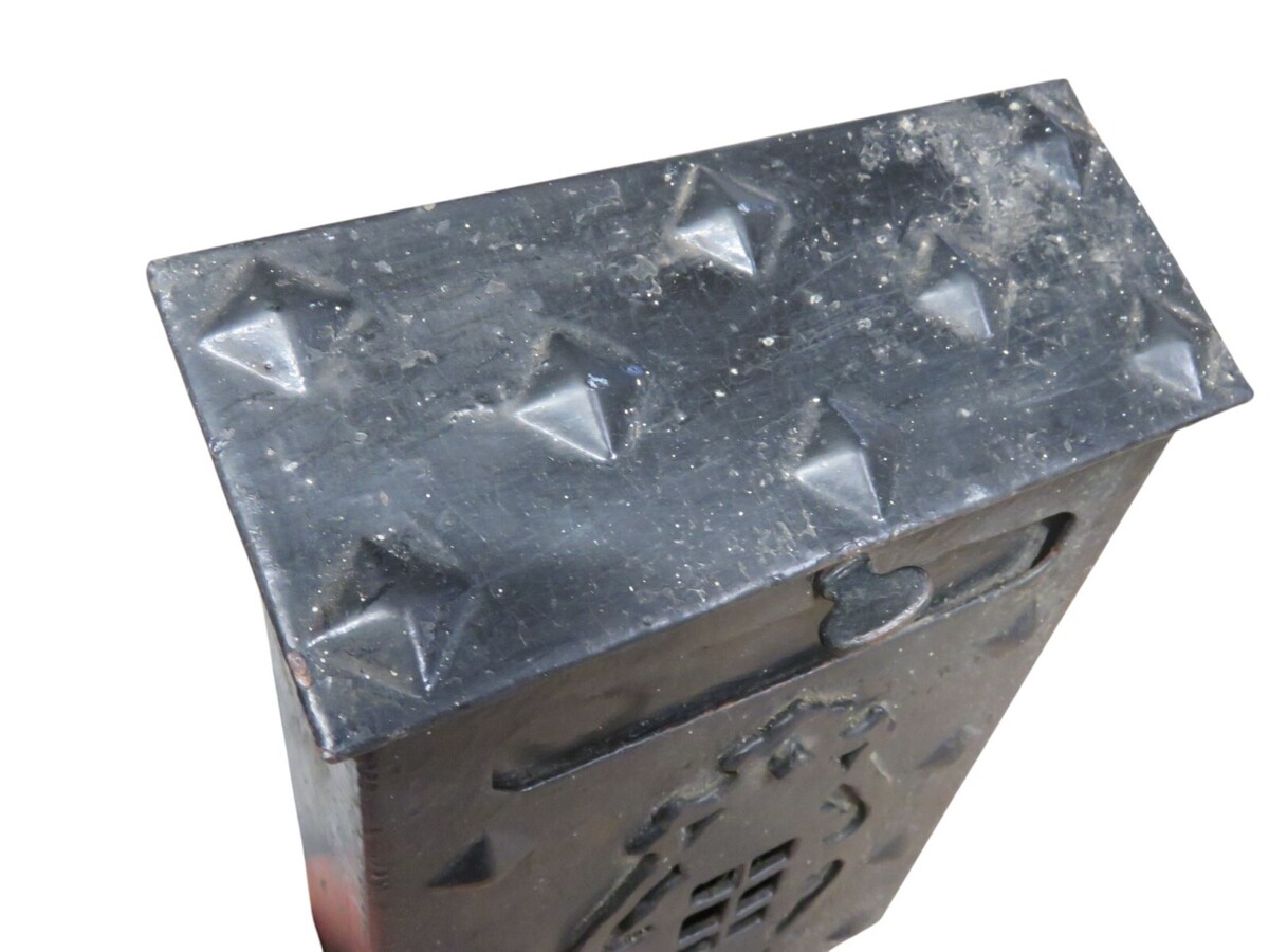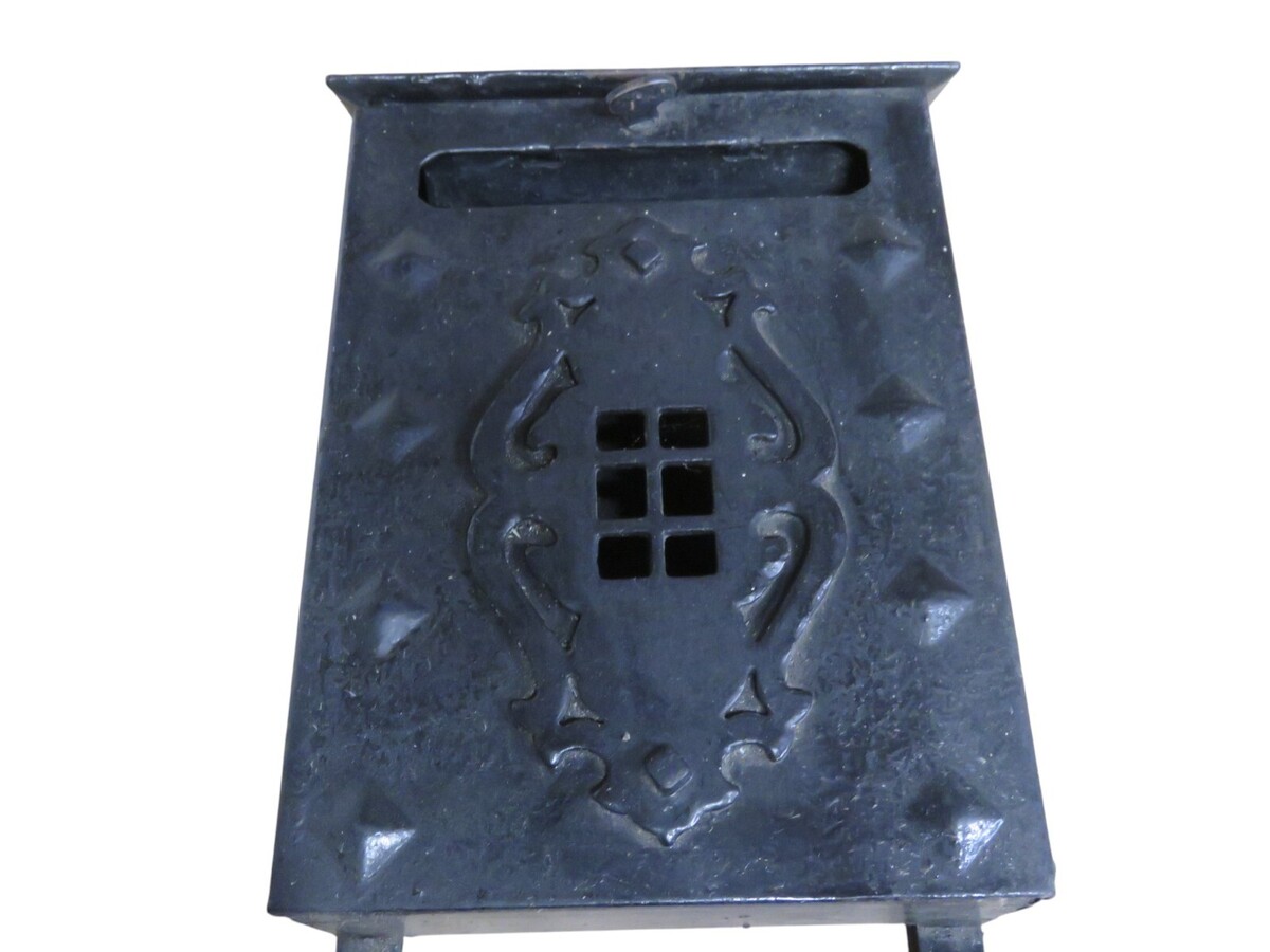 - Vtg Antique Cast Iron Metal Wall Mounted Mail Letter Box W/ Newspaper Holder