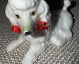- Vtg Bone China POODLE DOG Figurine 3" With Red Bow Ornament