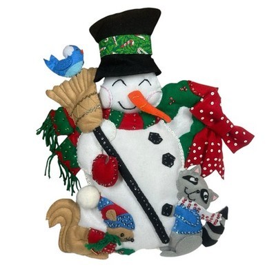 Primary image for Vtg Bucilla Felt & Sequin Holiday Wall Hanging Snowman & Woodland Animals 14x18"