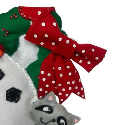Vtg Bucilla Felt & Sequin Holiday Wall Hanging Snowman & Woodland Animals 14x18"