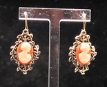 Vtg Cameo Earrings Carved Woman's Profile Relief Gold Tone Open Work Pierced
