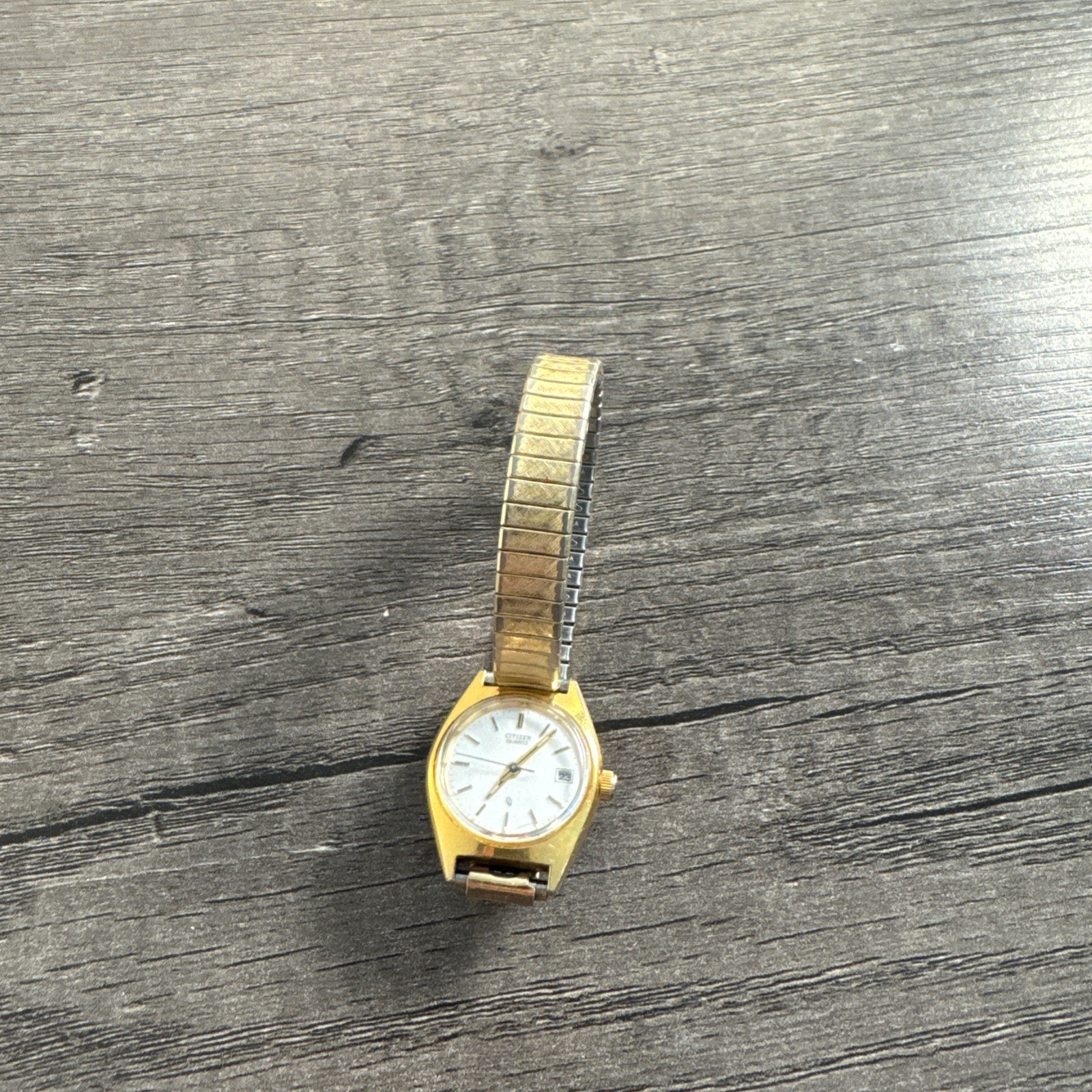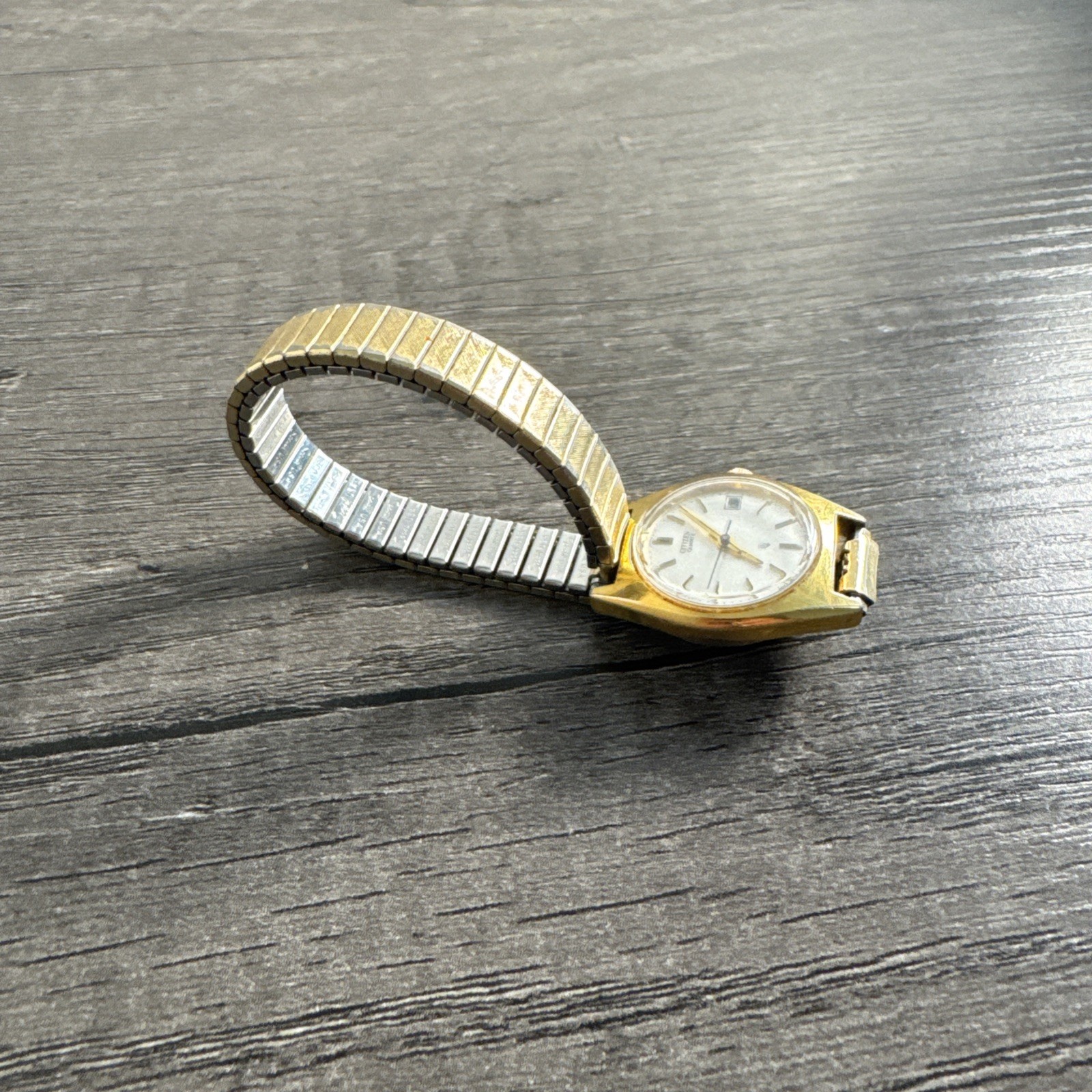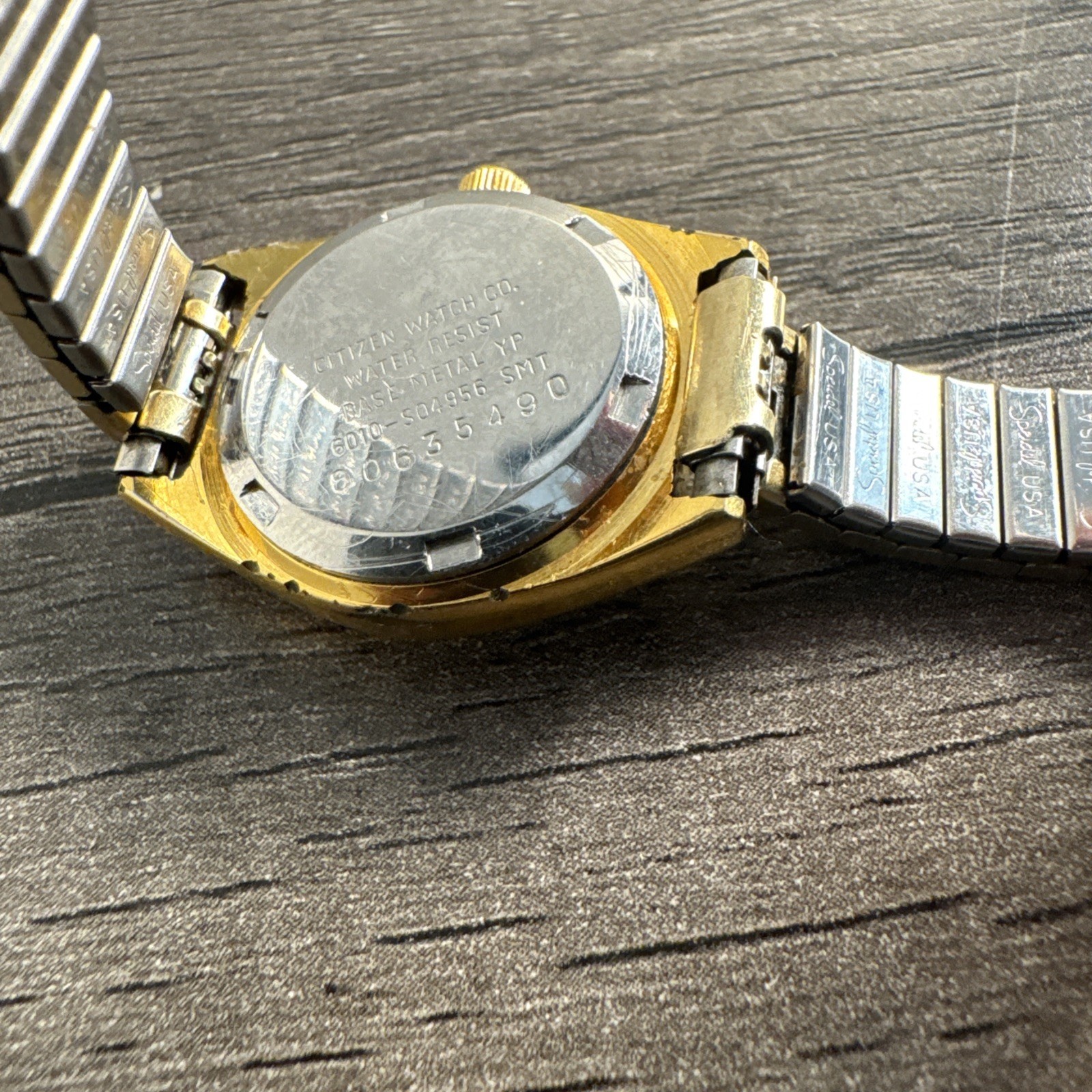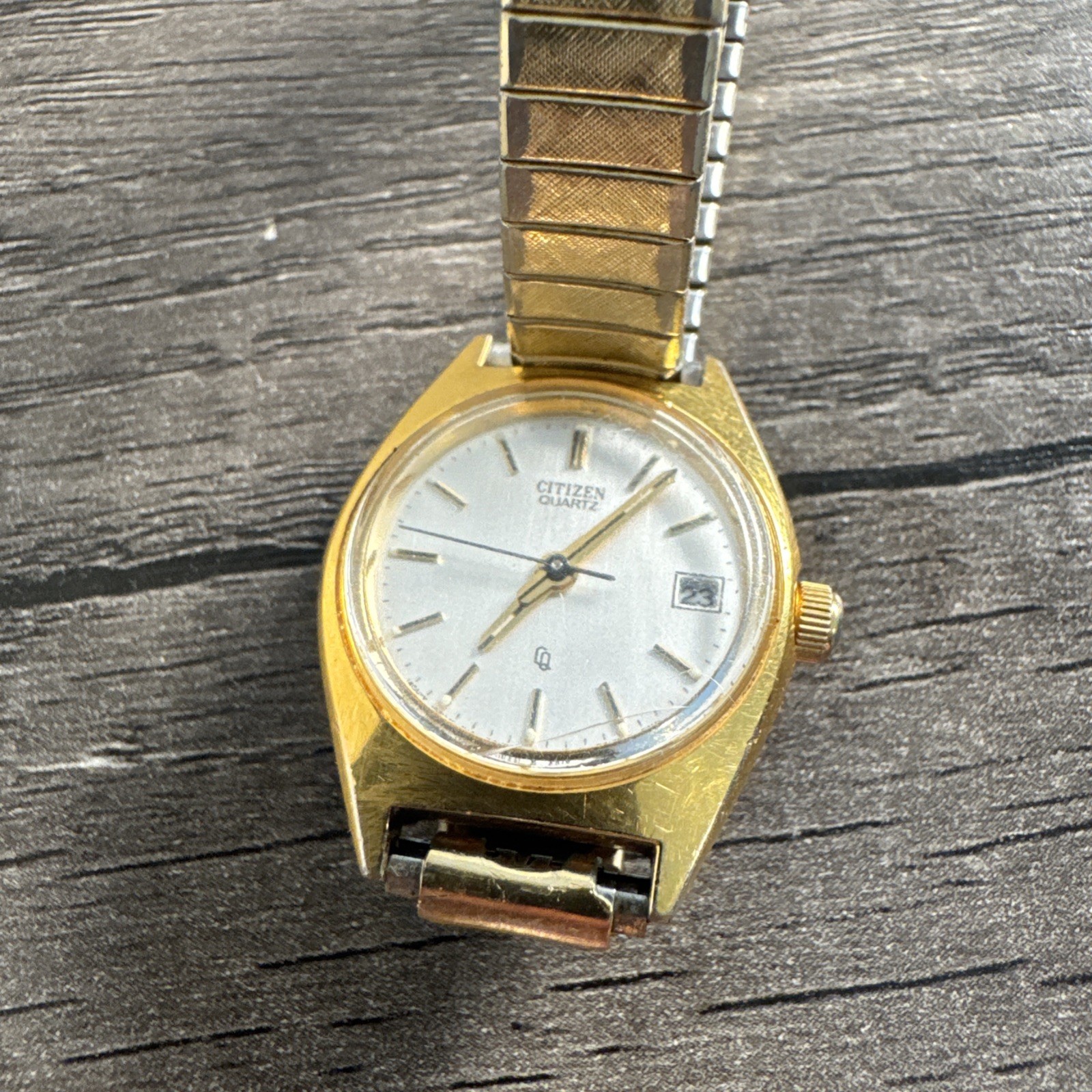 - Vtg Citizen CQ Watch Women Gold Tone 6010-S04956 Date Stretch Band