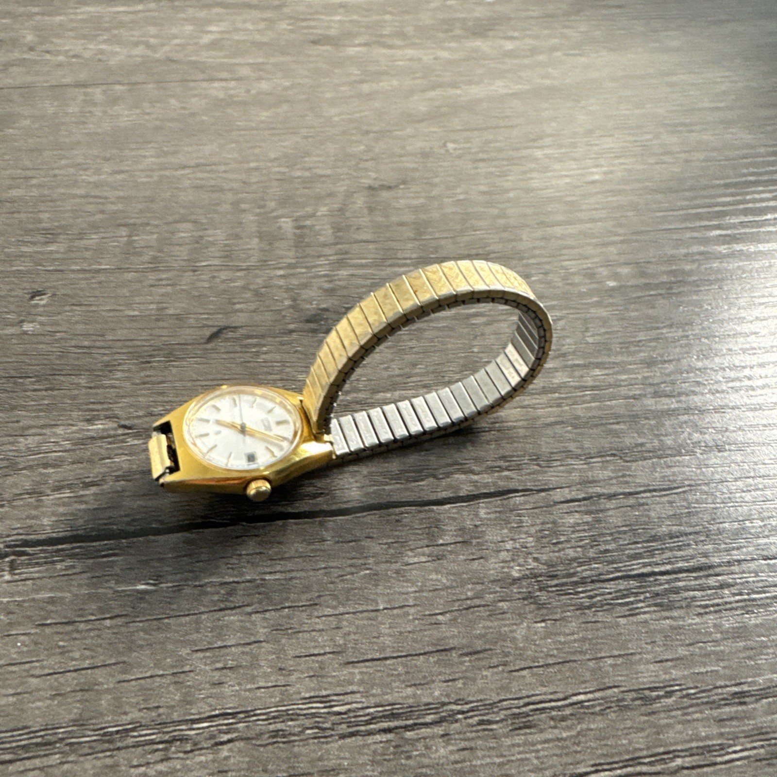 Vtg Citizen CQ Watch Women Gold Tone 6010-S04956 Date Stretch Band