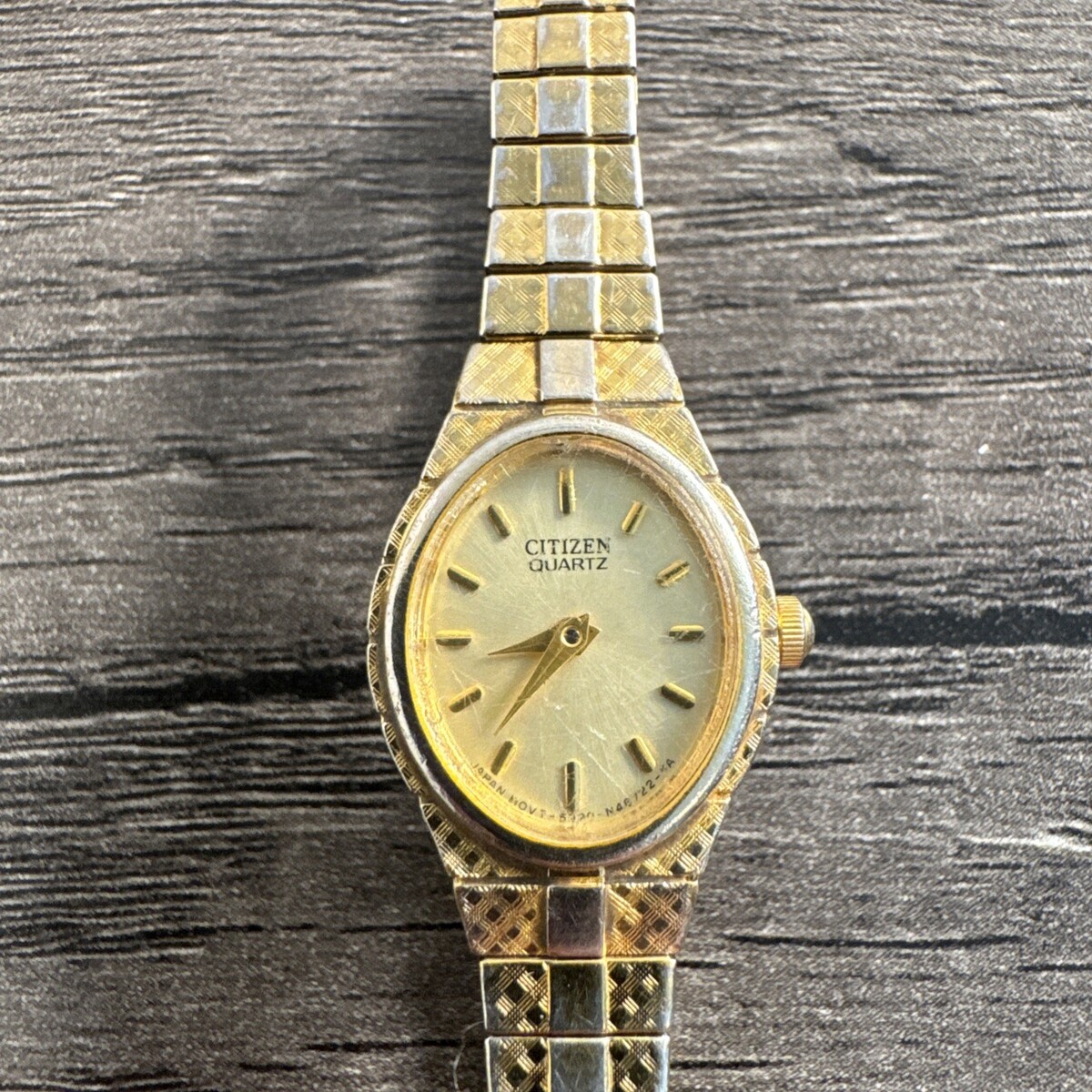 - Vtg Citizen Watch Women 17mm Gold Tone Dial 5920-S52446 Stretch Band