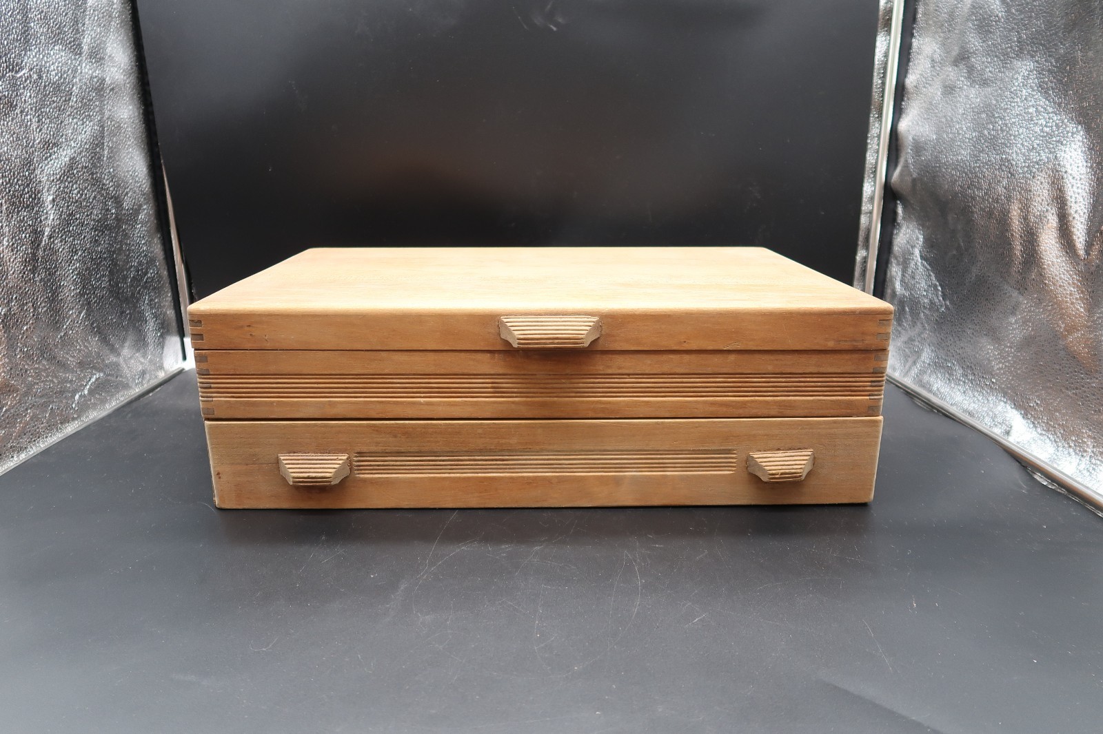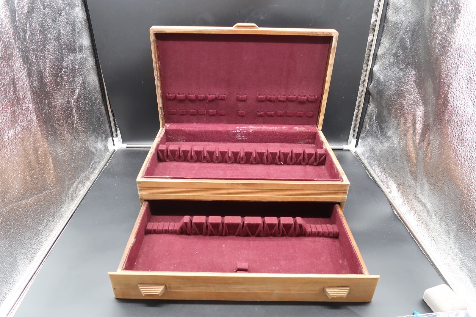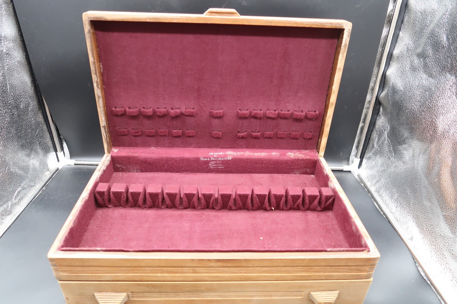 Vtg De Luxe by Home Decorations Two Compartment Lined Silverware Chest Box