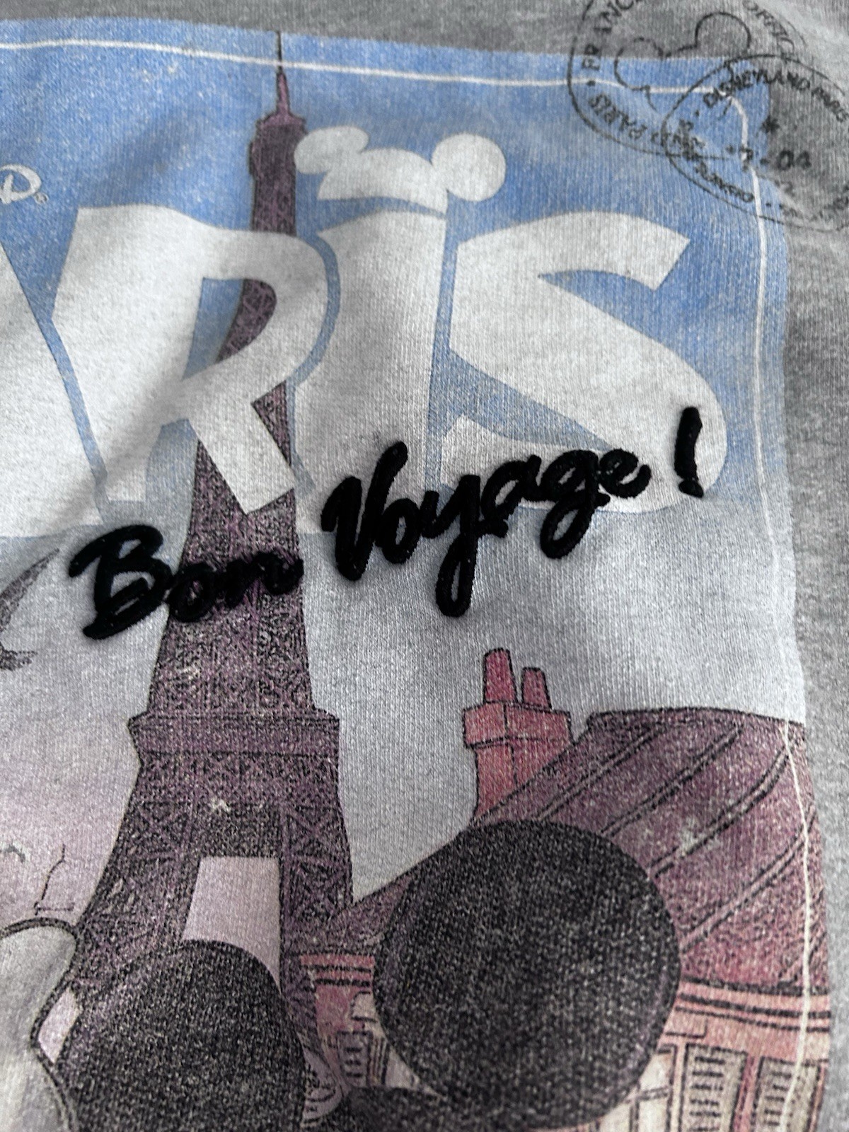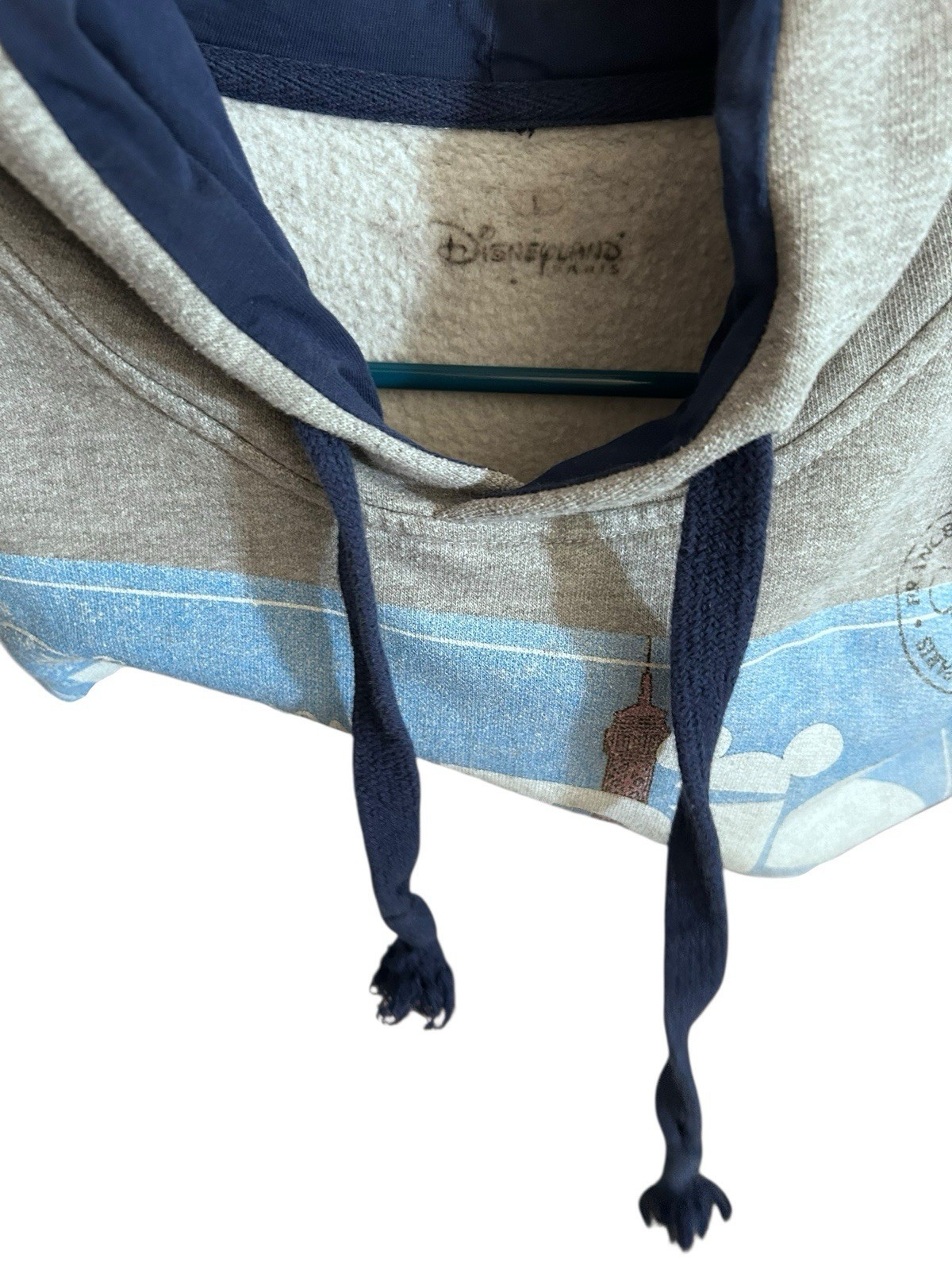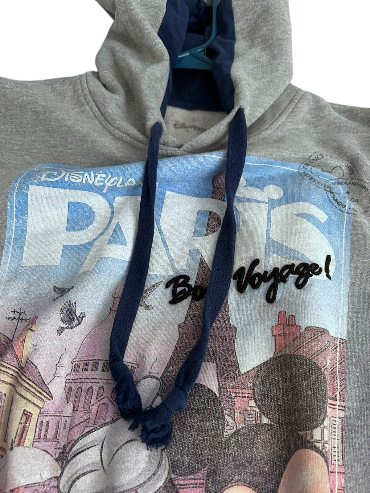 - Vtg Disney Hoodie Gray Paris 3D Bon Voyage Mickey Sweatshirt L -See Measurements