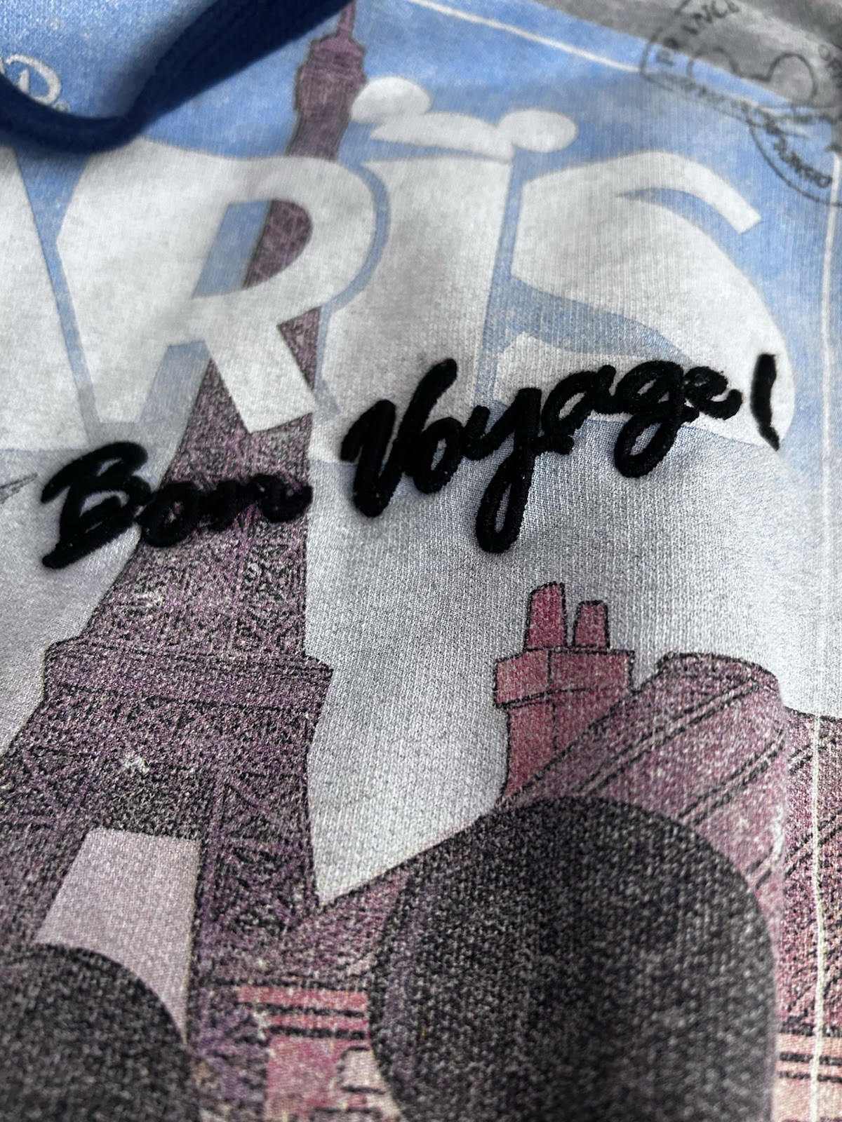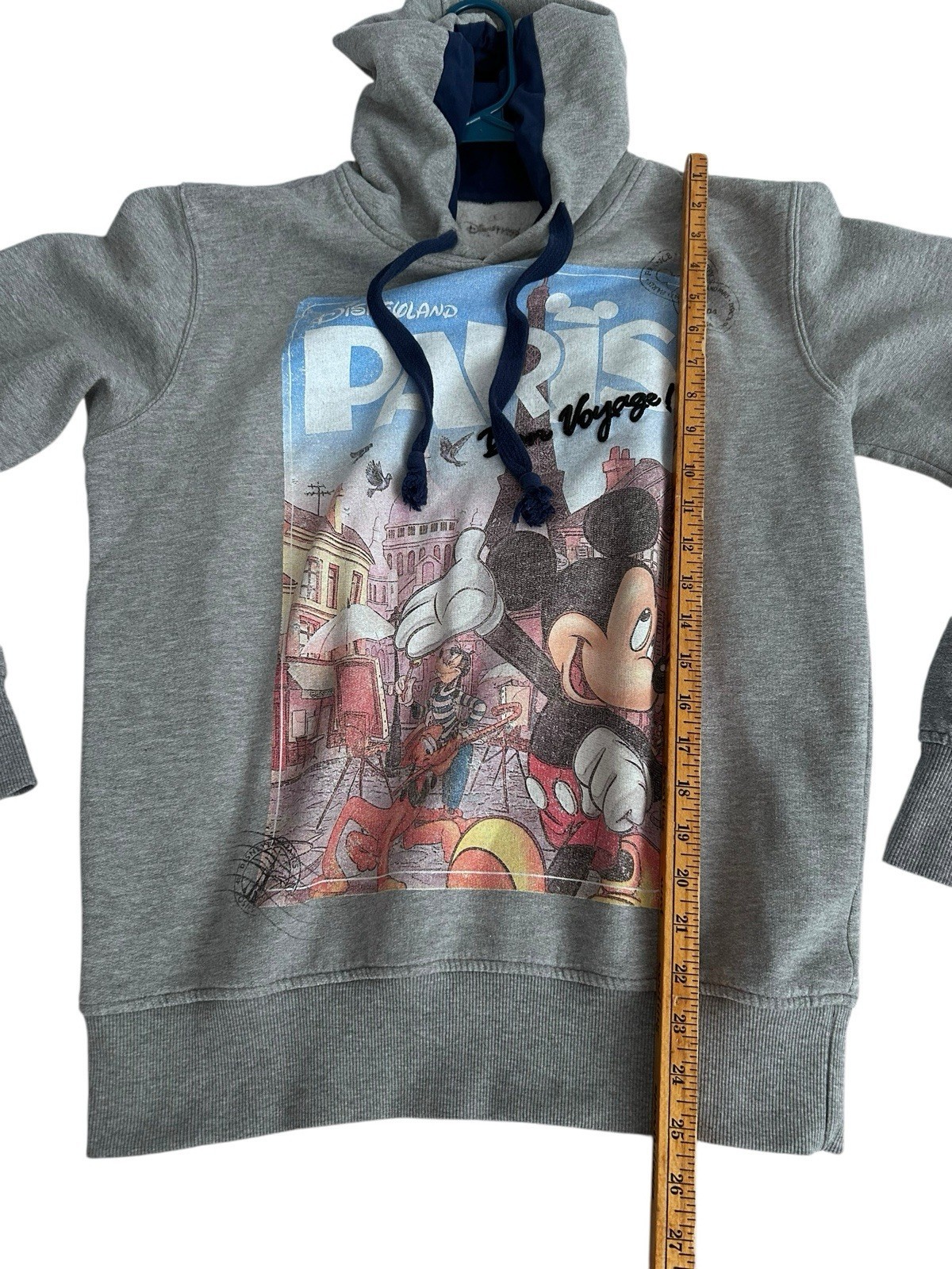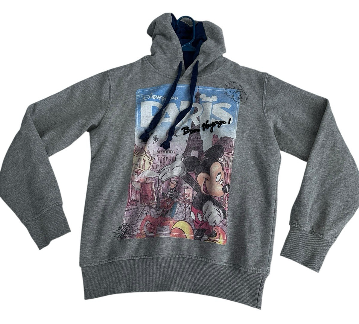 - Vtg Disney Hoodie Gray Paris 3D Bon Voyage Mickey Sweatshirt L -See Measurements