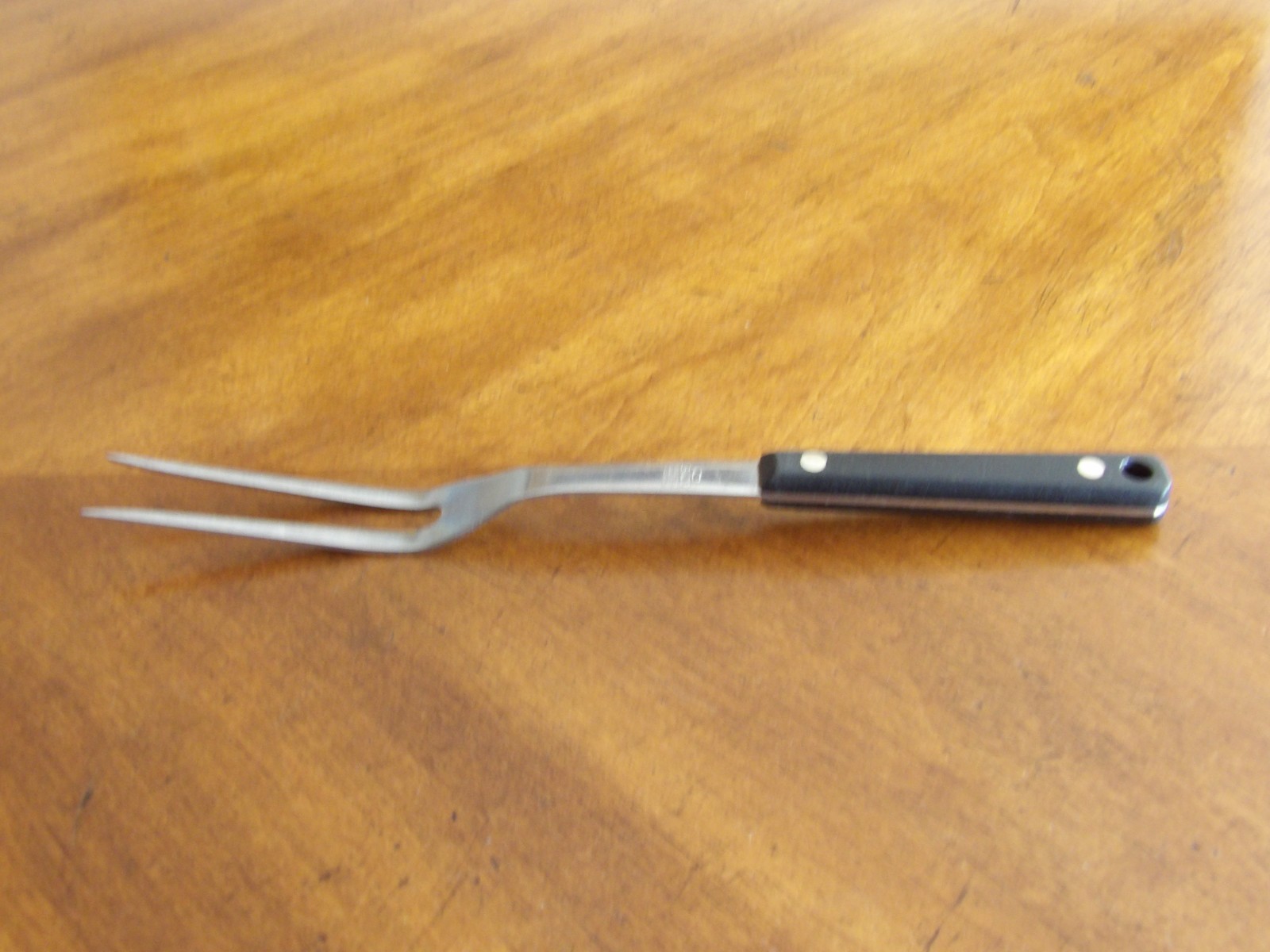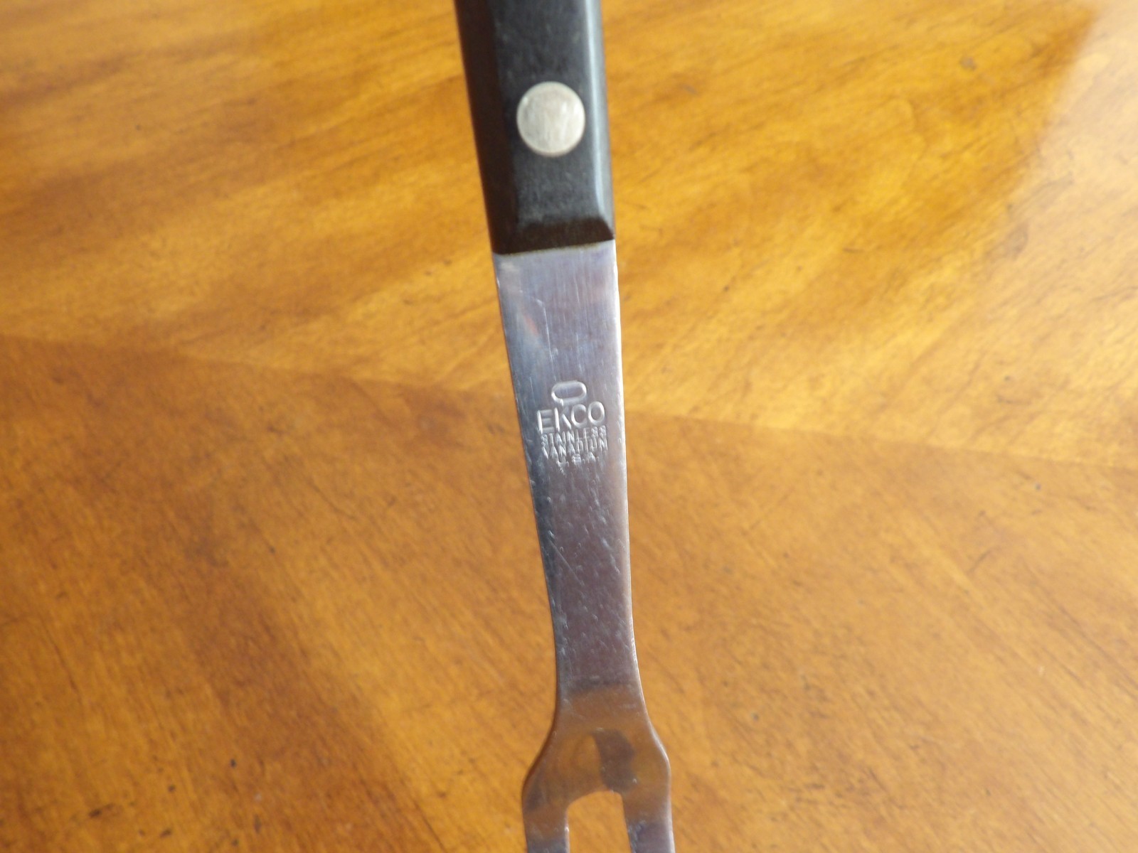 - Vtg ECKO FLINT Meat Fork Carving Stainless Vanadium Black Handle ~13.75" USA