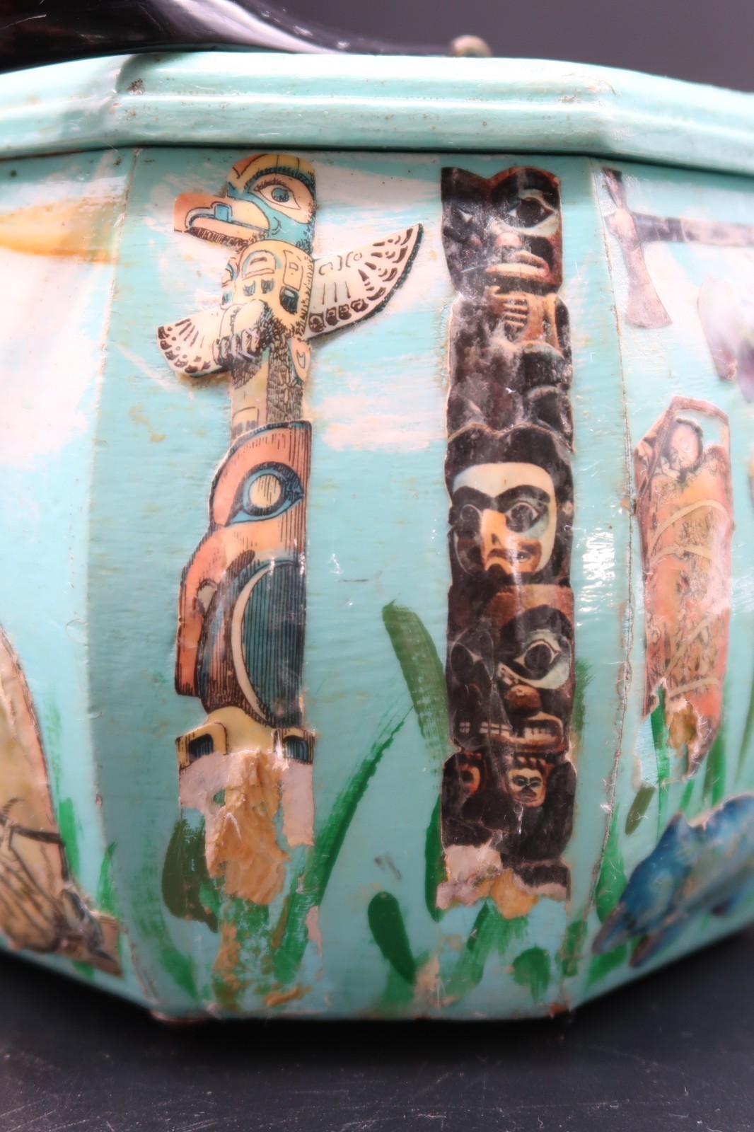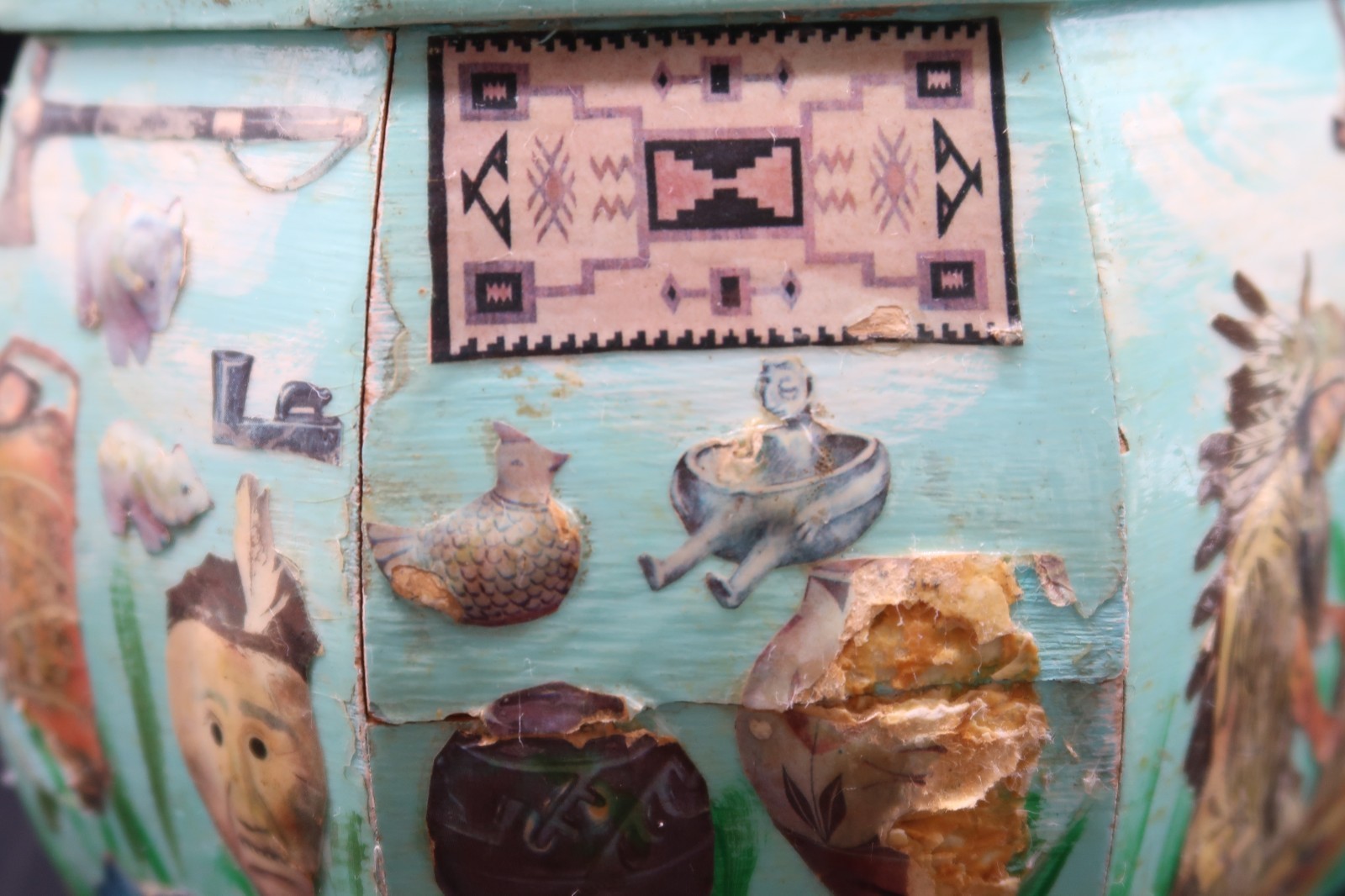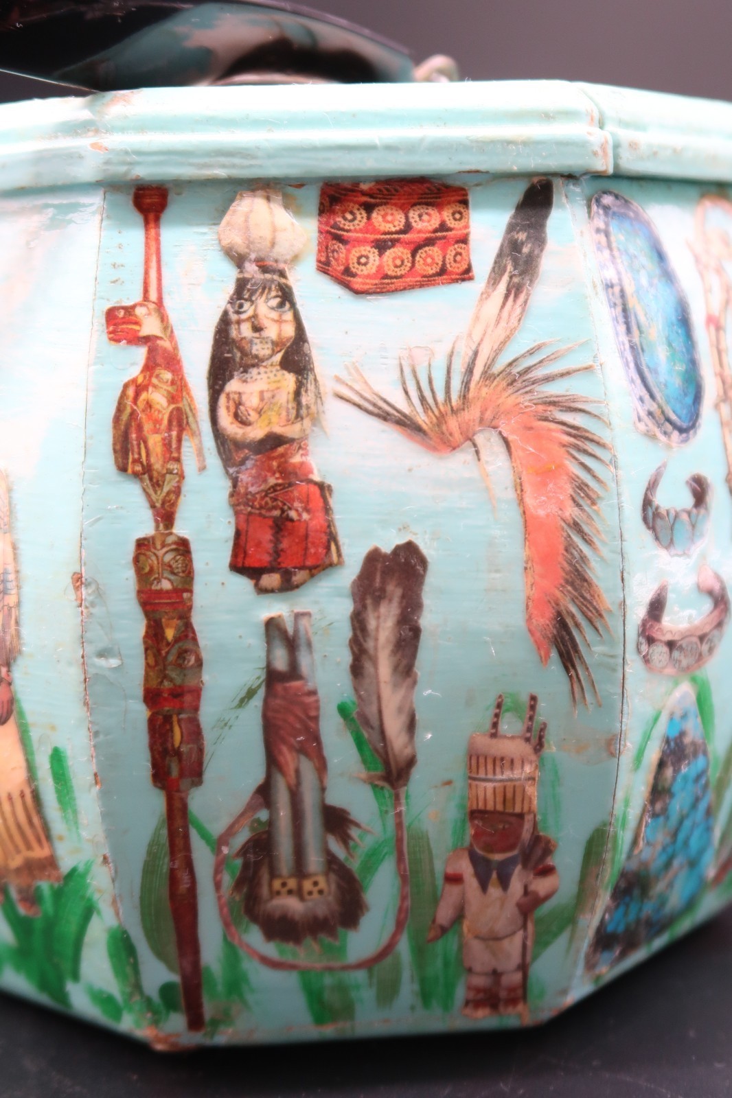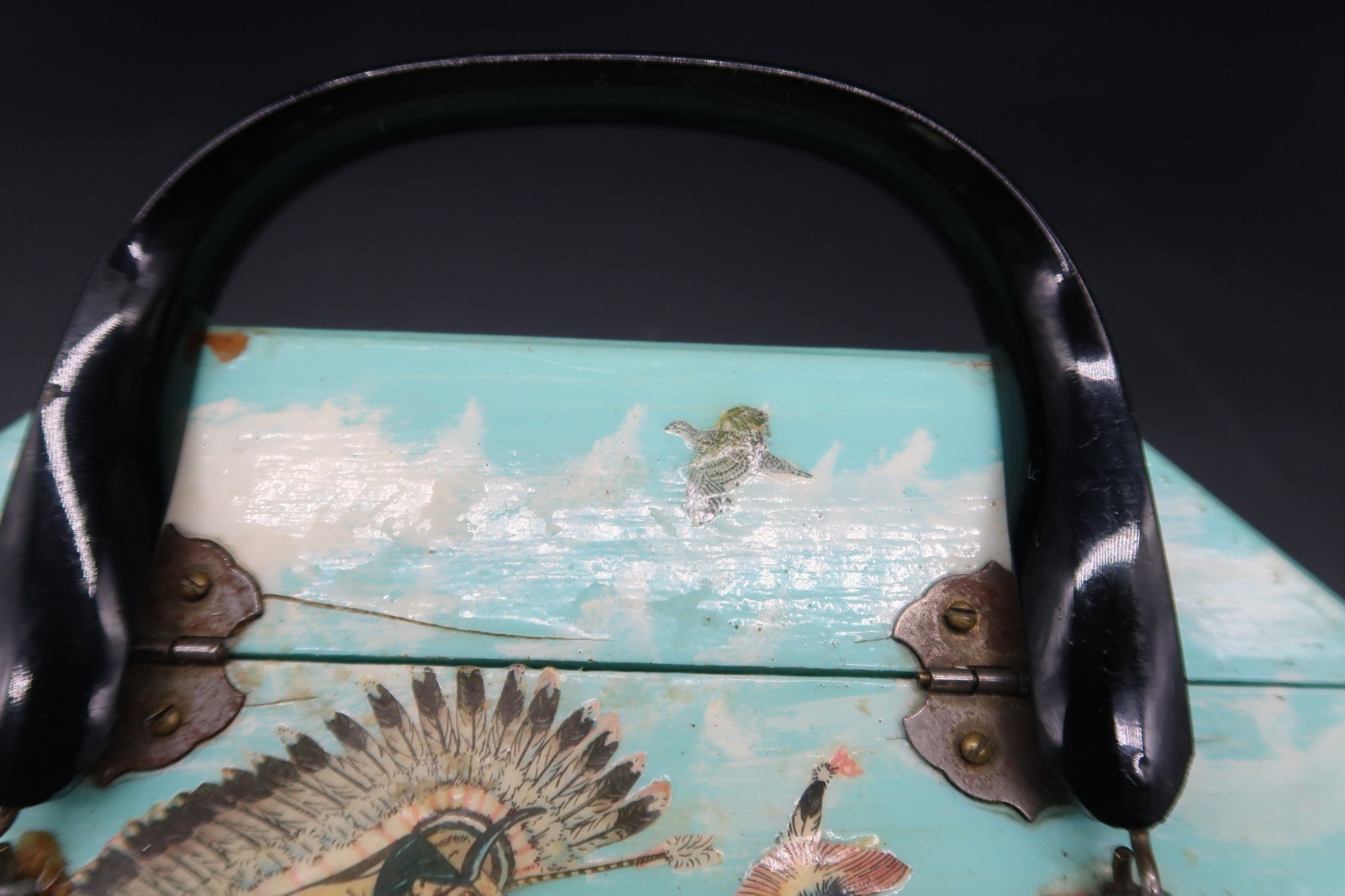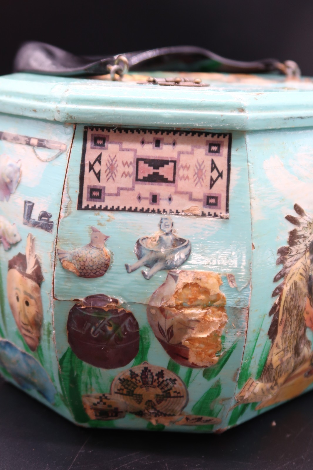 Primary image for Vtg Hand Made Wood Purse Decopage First People Themed Lucite Handle Signed