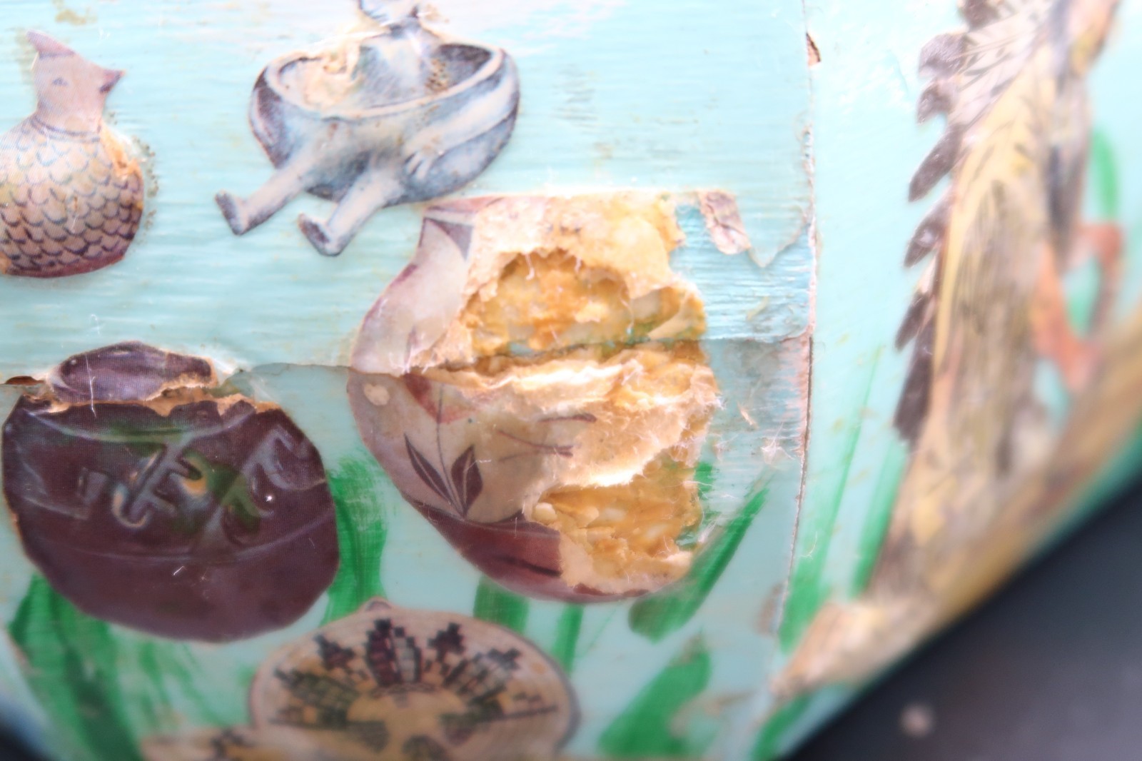 A unique looking Wood Decoupage purse. All imperfections are pictured. Wear and imperfections consistent with age and being handled. Please carefully examine all pictures before purchasing. The pictures are an important part of the description, and usually include important measurements. Items are in good pre-owned condition unless otherwise noted.
