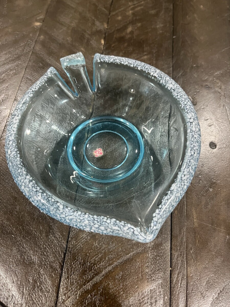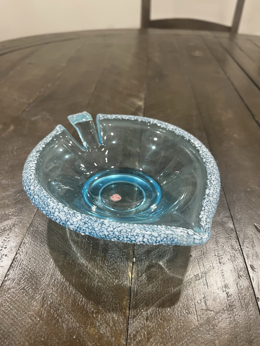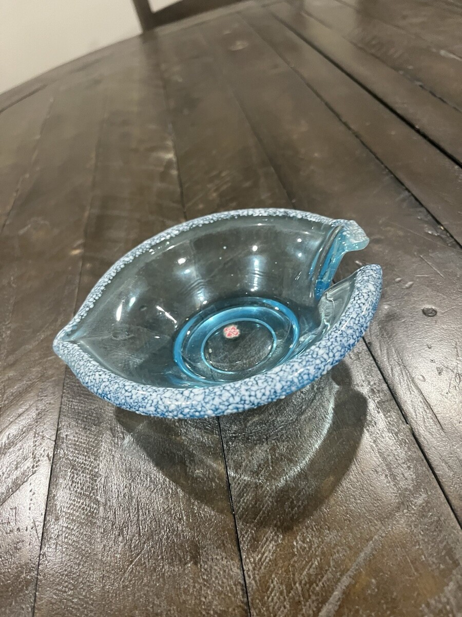 - Vtg Italian Light Blue Glass Dish Handblown White Splatter Specks Sticker