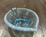 Vtg Italian Light Blue Glass Dish Handblown White Splatter Specks Sticker