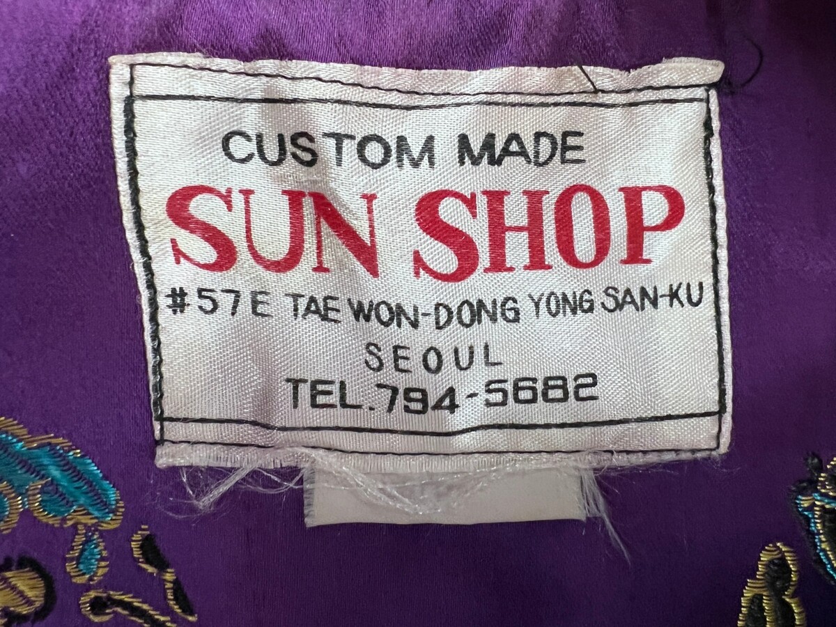 This beautiful coat is embroidered with medallions on 5 toes dragons, bats and other Chinese style items, though made in Korea.