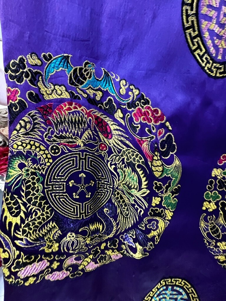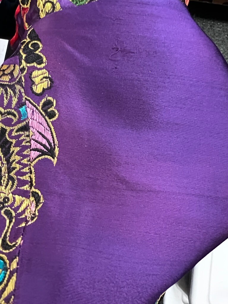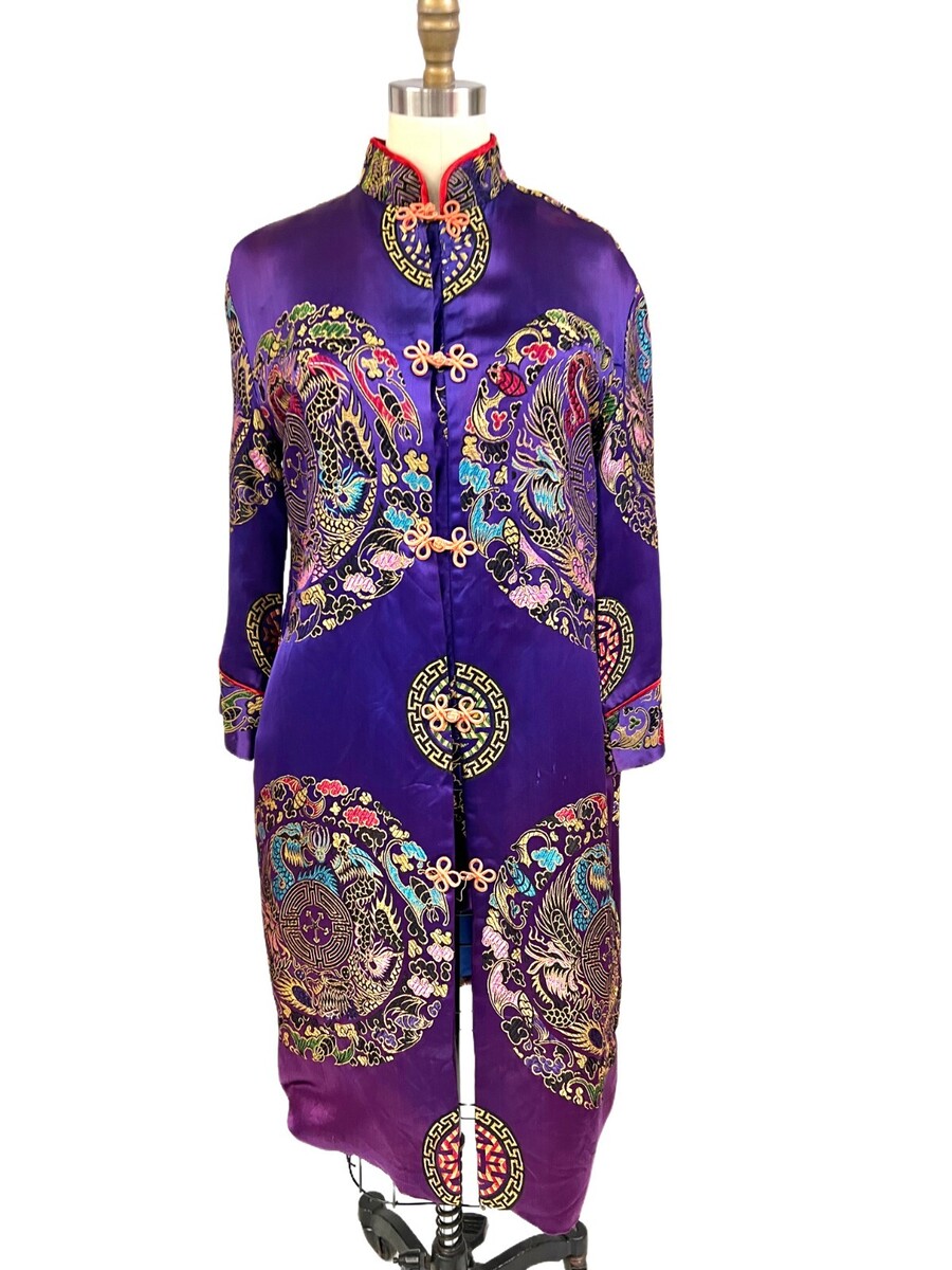 - Vtg Korean Coat Purple Silk Embroidered Robe ESME 5 Toe Dragon Sz M 60s 70s