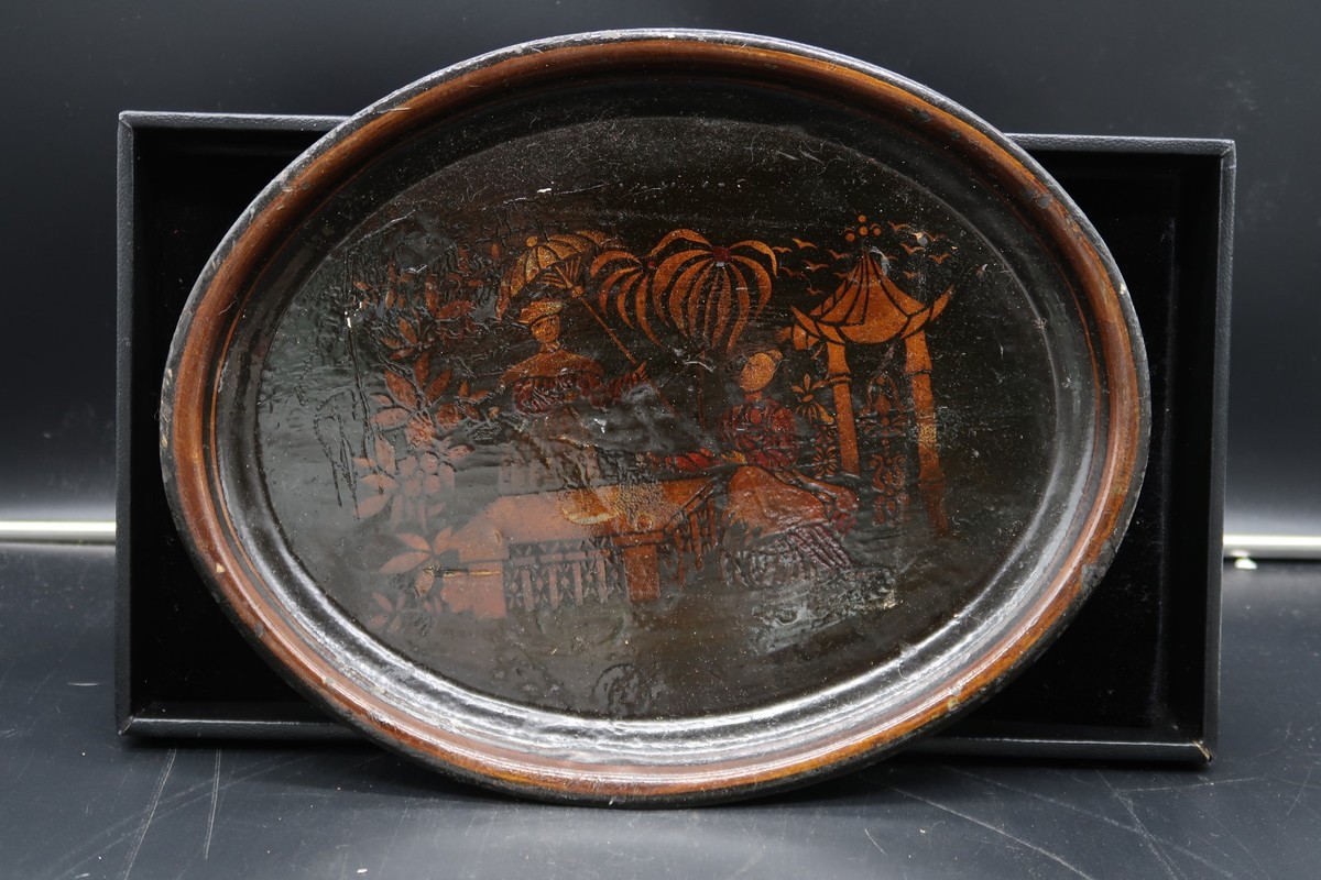 Primary image for Vtg Laquered Wood Serving Tray w/ Asian Themed Design Oriental Decor Unique