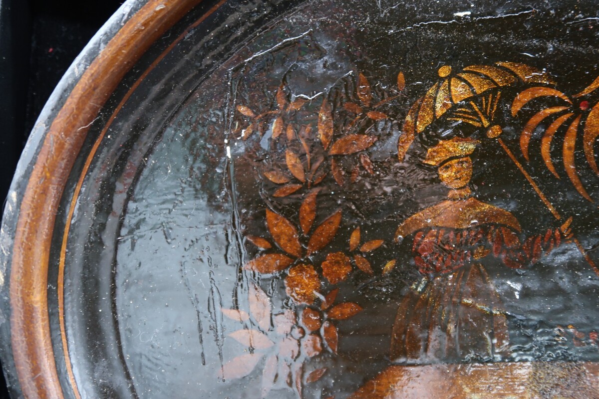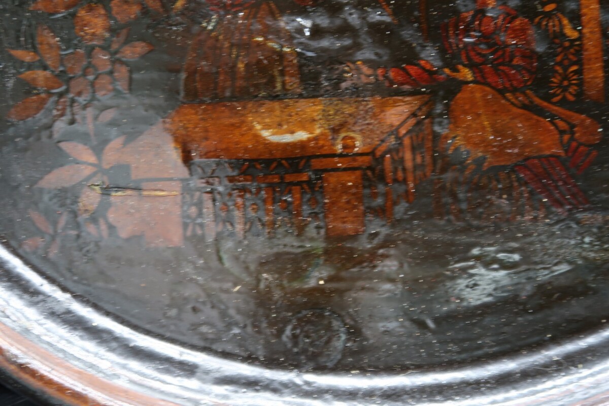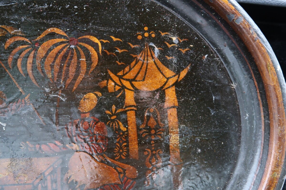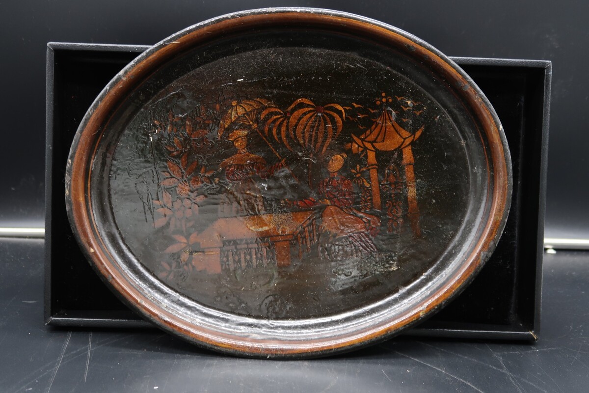 Vtg Laquered Wood Serving Tray w/ Asian Themed Design Oriental Decor Unique