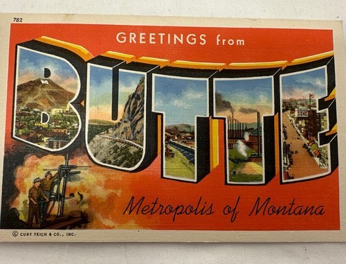 - Vtg LARGE LETTER POSTCARD GREETINGS from BUTTE, MONTANA New