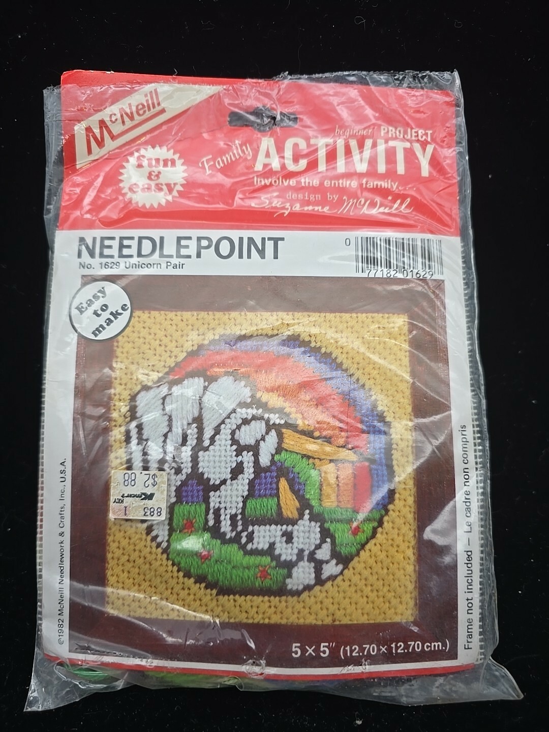- Vtg McNeill Fun & Easy Unicorn Pair #1629 Embroidery Kit Rainbow 1982 NIP 5"x5"