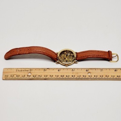 - Vtg Mechanical Skeleton See Thru Gold Tone Afterthoughts Men’s Watch Brown 34mm