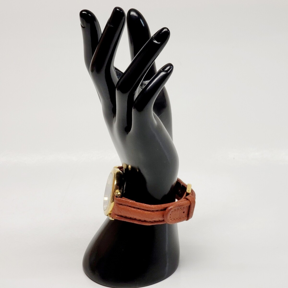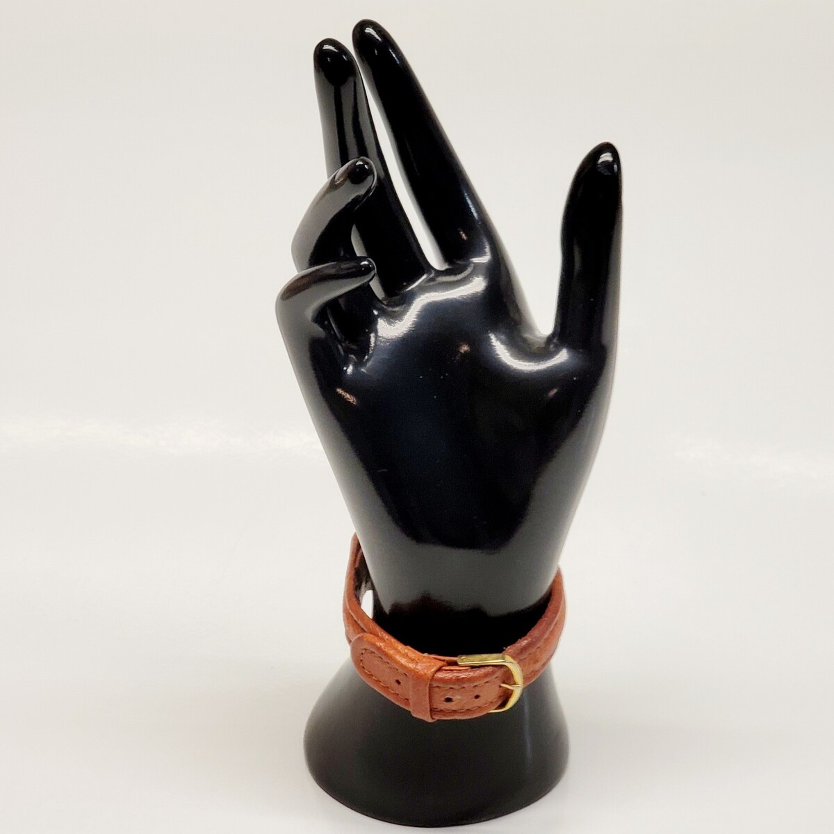 The Vtg Mechanical Skeleton See Thru Gold Tone Afterthoughts Men's Watch in brown features a round gold case with Roman numerals on a brown dial. The watch has a mechanical (manual) movement and is shock resistant, making it suitable for casual and fashion styles. With a 35mm case size and stainless steel case material, this wristwatch has a two-piece leather strap in brown with a buckle clasp. It also includes a 12-hour dial, seconds hand, and water resistance up to 3 bars, making it a stylish and functional accessory for men.