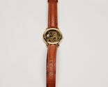 Vtg Mechanical Skeleton See Thru Gold Tone Afterthoughts Men’s Watch Brown 34mm