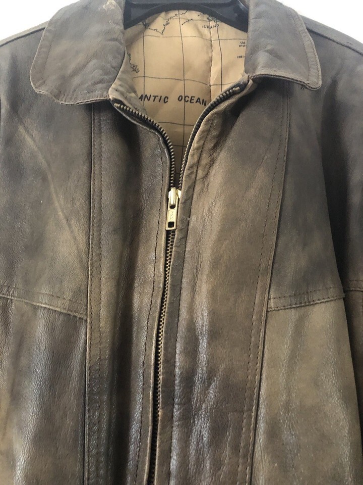 - Vtg Men’s Leather Jacket Green Atlas Lining Size Medium READ Description