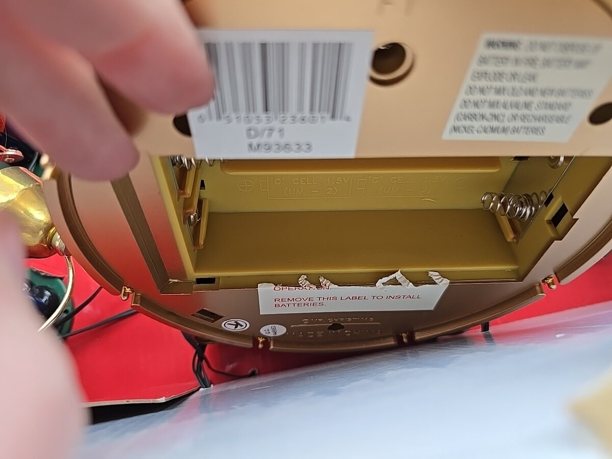 This is new open box - but missing power adapter. I had to open the battery compartment to put in new batteries for the test - that is why the paper is ripped there.