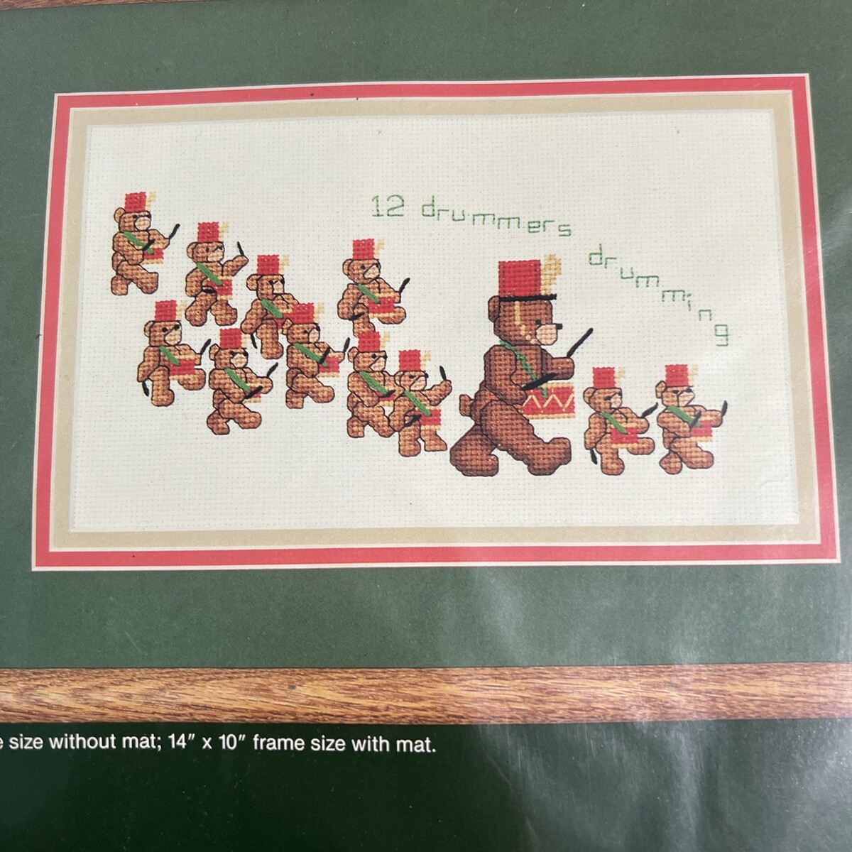 VTG NOS Dale Burdett Country Cross Stitch Kit DRUMMERS DRUMMING Christmas 1986 10? x 6? frame size without mat; 14? x 10? frame si3 with mat. Mat frame not included. New sealed package Item #CCK271