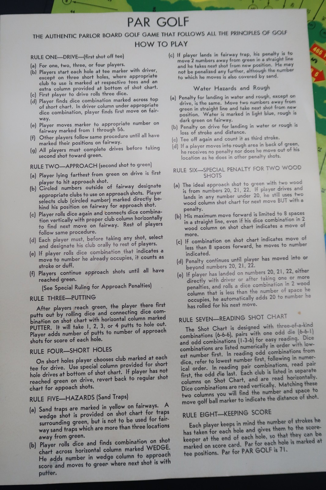 Vtg Par Golf Authentic Parlor Game Box Board Instructions Dice 3 Player Markers